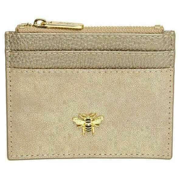 • 4 Card Slots , Zipper Closure Cash Compartment , Honeybee Logo on Front , Gold Metal Hardware