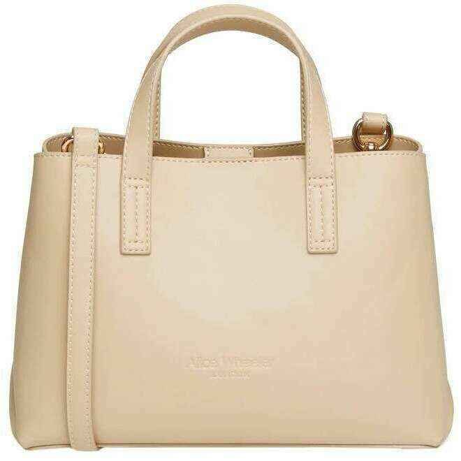 Brought to you by the brand Alice Wheeler London, this sand beige women's florence handbag is made from 100% nappa finish vegan faux leather. It measures 17cm(height) x 26cm(width) x 12cm(depth). All the bags come complete with alice wheeler packaging. The Alice Wheeler London Florence Handbag - Sand Beige will make a lovely chic accessory that will be perfect for any occasion. Its elegant smooth sleek design allows you to pair this bag with any outfit making this perfect for everyday. Inside is a double compartment with an integrated zipped section ensuring you have a space for your valuables as well as compartments with easy access for grab and go belongings like sunglasses or lipstick. The double carry handles and choice of the adjustable crossbody strap ensures easy carrying making it a must have piece.