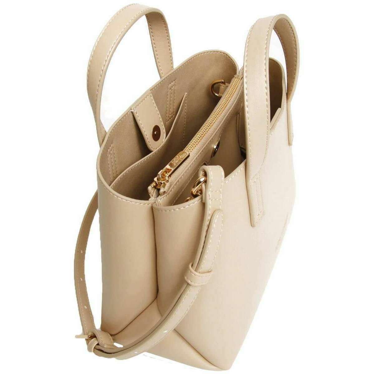 • 2 Carry Handles , Adjustable Crossbody Strap , 2 Large Compartments , Third Middle Zippered Section , Magnetic Closure , Gold Metal Hardware