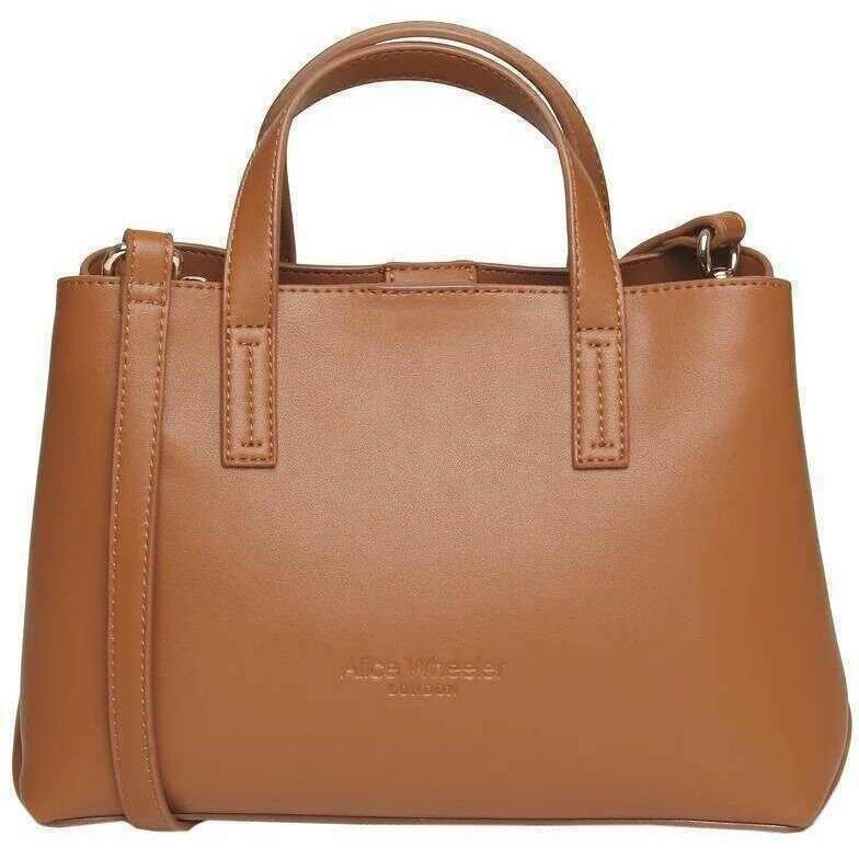 This florence handbag for women is fashioned by the brand Alice Wheeler London in a tan colour and is made from 100% nappa finish vegan faux leather. It measures 17cm(height) x 26cm(width) x 12cm(depth). All the bags come complete with alice wheeler packaging. The Alice Wheeler London Florence Handbag - Tan will make a lovely chic accessory that will be perfect for any occasion. Its elegant smooth sleek design allows you to pair this bag with any outfit making this perfect for everyday. Inside is a double compartment with an integrated zipped section ensuring you have a space for your valuables as well as compartments with easy access for grab and go belongings like sunglasses or lipstick. The double carry handles and choice of the adjustable crossbody strap ensures easy carrying making it a must have piece.