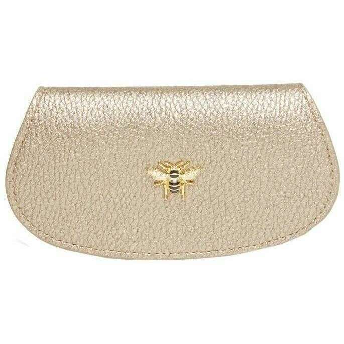 Brought to you by the brand Alice Wheeler London, this bronze women's glasses case is made from 100% vegan faux leather. It measures 7.5cm(height) x 13.5cm(width). All the accessory cases come complete with alice wheeler packaging. The Alice Wheeler London Glasses Case - Bronze will level up your glasses game, keeping them safe and protected in style. The sleek and smooth design will add elegance to your everyday. This convenient glasses case is perfect for keeping in your bags without them getting scratched or broken or just keeping them secure in your home. This is a must have if you frequently wear glasses and want a chic way to protect them. Completing this case is the beautifully iconic bee embellishment adorned the front of it.