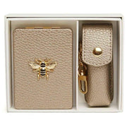 Brought to you by the brand Alice Wheeler London, this bronze women's oblong compact mirror and lipstick holder gift set is made from 100% vegan faux leather. It measures mirror - 8.5cm(height) x 6cm(width) lipstick holder - 8.5cm(height) x 3cm(width) x 3cm(depth). All the compacts come complete with alice wheeler packaging. The Alice Wheeler London Oblong Compact Mirror and Lipstick Holder Gift Set - Bronze will make a stunning gift to yourself or someone you love. The beautifully iconic bee embellishment is featured on the mirror, and both have matching colours and hardware, making them a stylish matching pair. The mirror is great for everyday touch ups, and the lipstick holder is perfect for protecting your favourite everyday lipstick in style. These will be a perfect addition to your everyday bag, adding convenience.