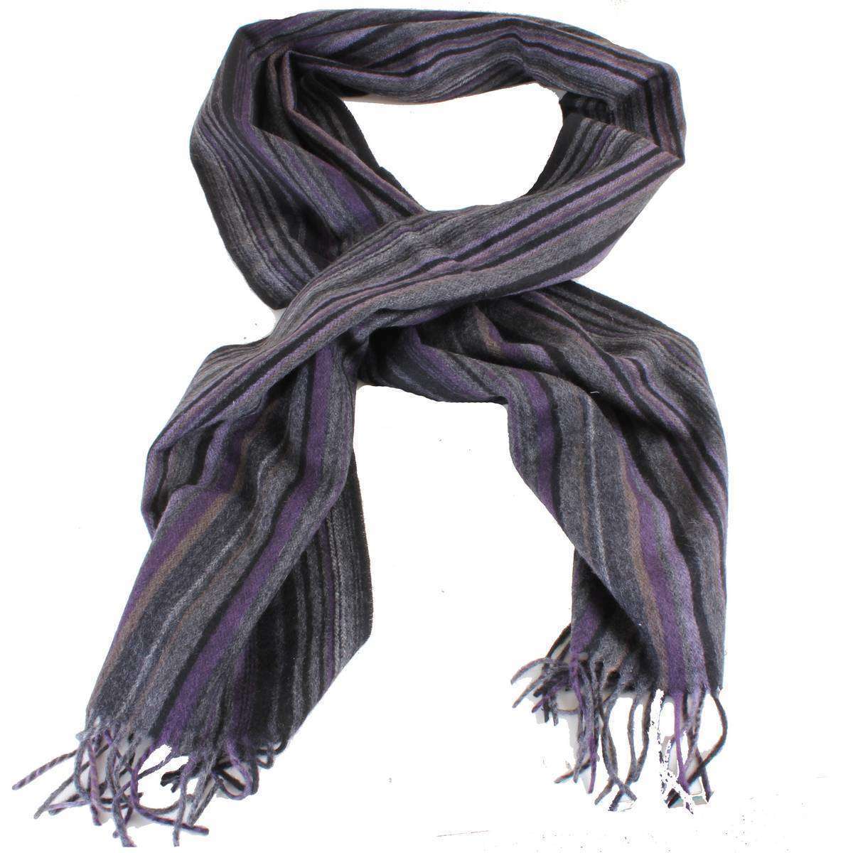 Bassin and Brown Stefano Striped Wool Scarf - Purple/Grey