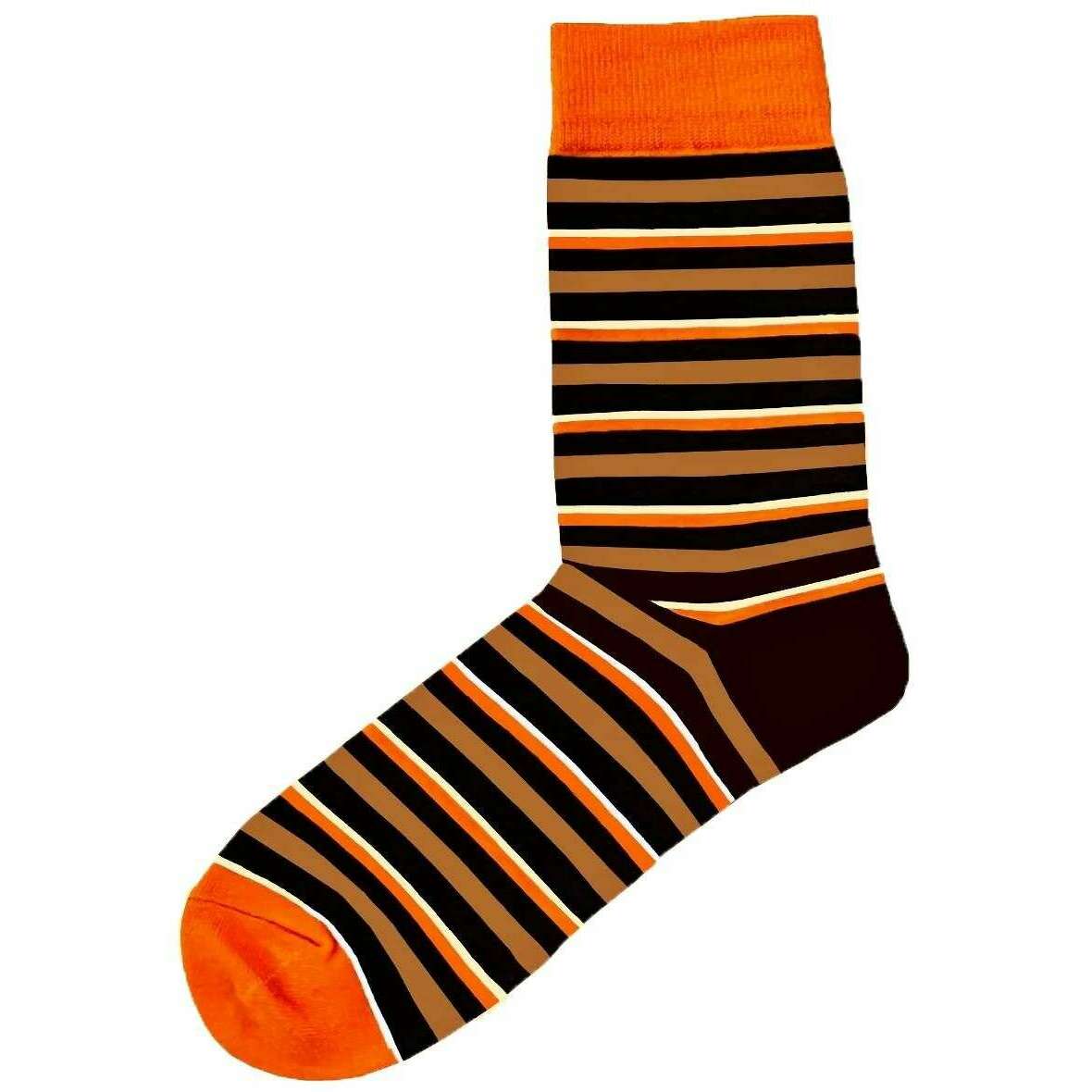 Bassin and Brown Woodrowe Multi Stripe Socks - Orange/Brown/Fawn