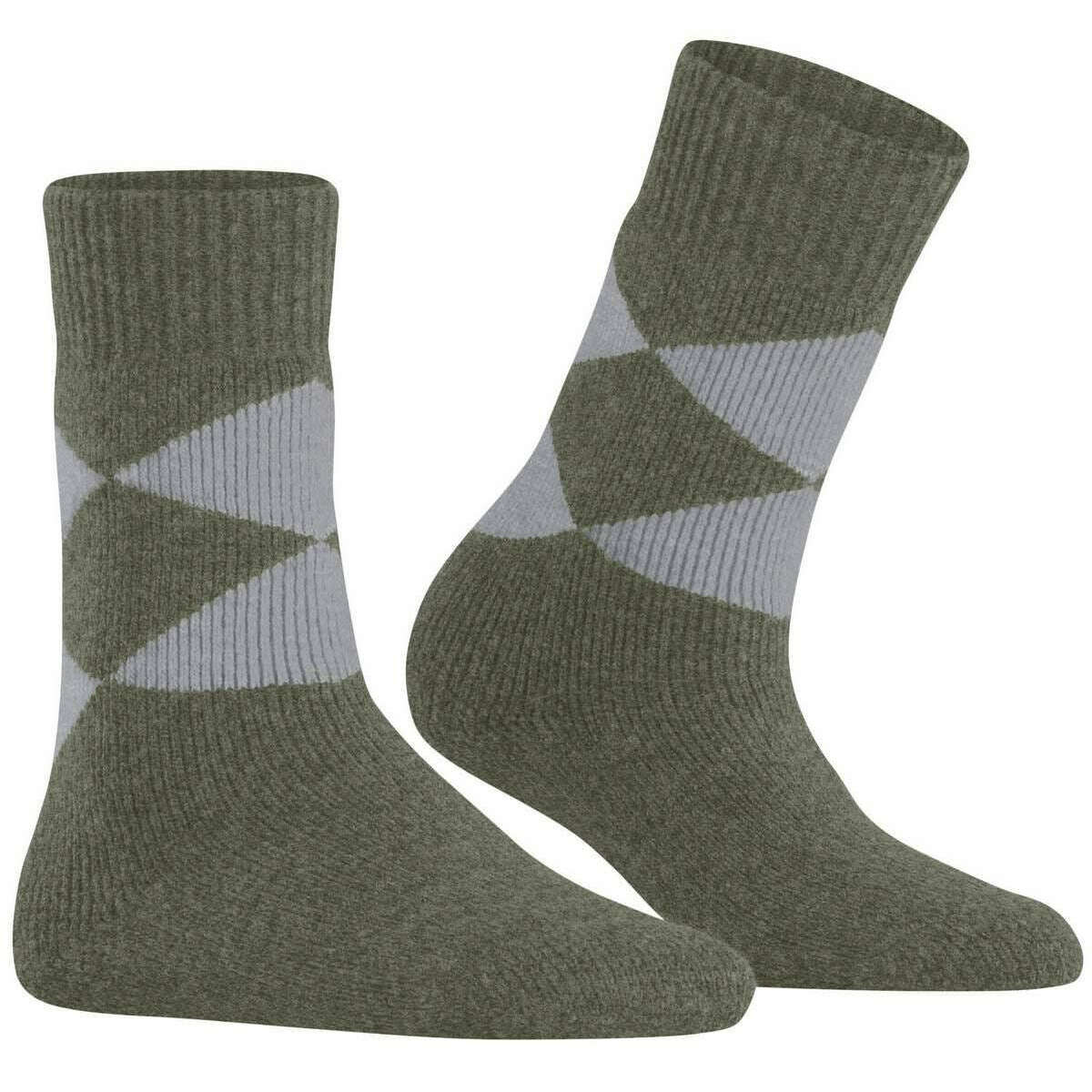 Using green 51% polyamide, 24% rayon, 24% wool and 1% elastane, these cosy argyle socks by Burlington are perfect for women and a must have. It is recommended to machine wash at 30 degrees to keep these socks in good condition. All the socks come complete with burlington sock tag. The Burlington Cosy Argyle Socks - Juniper Green keep your feet cosy and warm with their soft full plush inside. Made specifically to ensure your comfort, these socks have a wool blend that deliver that comfort. Printed nubs on the sole improve grip, so you can wear around all day on any surface. The modern Argyle design lets you stay in fashion whether you are out or cosying up at home!