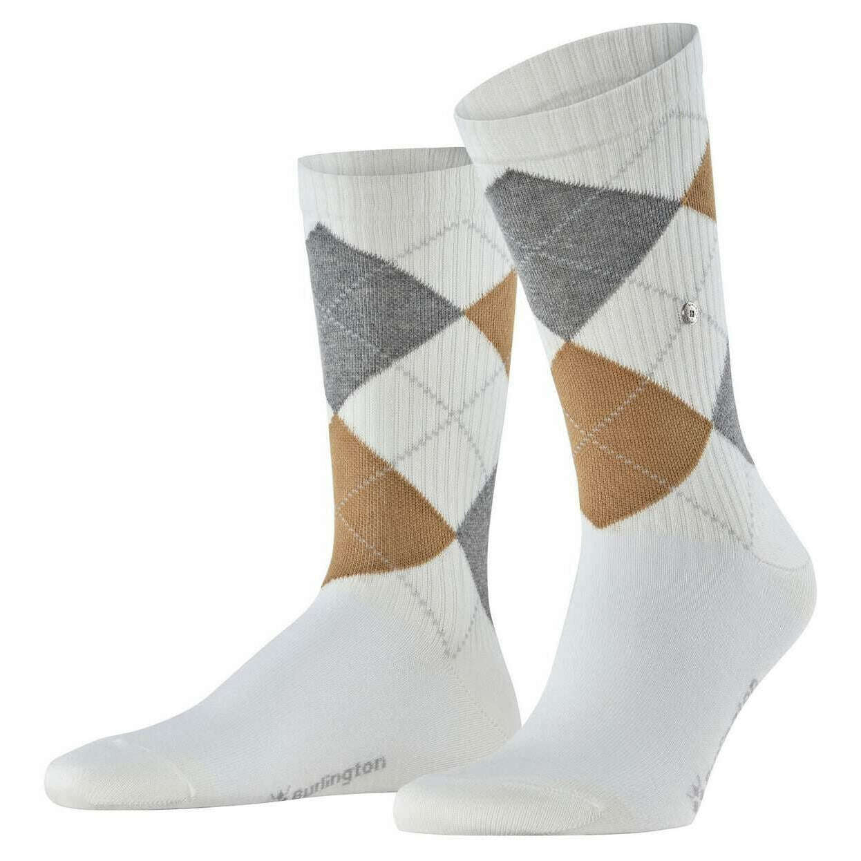 Designer Burlington have brought you these men's 77% cotton, 21% polyamide and 2% elastane socks using off white tones. Also the off white socks are designed in a argyle pattern, It is recommended to wash at 40 degrees to keep these socks in good condition. All the socks come complete with burlington sock tags. The Burlington Rib Court Socks - Off White come with an elegant fine ribbed structure for a trendy look. These soft cotton socks deliver a secure, flexible fit without ever feeling tight. The classic check pattern forms a perfect symbiosis with the fine ribbing and the iconic Burlington clip. Whether you re heading to work, running errands, or dressing up for the evening, these sustainable socks provide that perfect blend of comfort, class, and long-lasting wear.