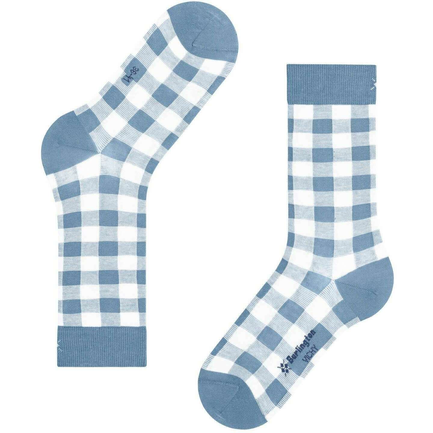 Using blue 62% organic cotton, 35% polyamide and 3% elastane, these vichy socks by Burlington are perfect for women and a must have. Also the sky blue socks are designed in a checked pattern, It is recommended to wash at 40 degrees to keep these socks in good condition. All the socks come complete with burlington socks tags. The Burlington Vichy Socks - Sky Blue are a stylish, unique addition to any wardrobe, designed to add a touch of flair while ensuring comfort and durability. These socks combine the classic check pattern and the striking, contrasting diamond pattern at the edge to enhance any outfit. The high-quality combed cotton keeps these socks breathable, while the stretch fabric ensures they fit comfortably without slipping.