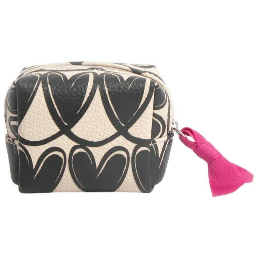 Caroline Gardner Mono Linked Hearts Ultra Mini Cube Cosmetic Bag - Black/Cream
