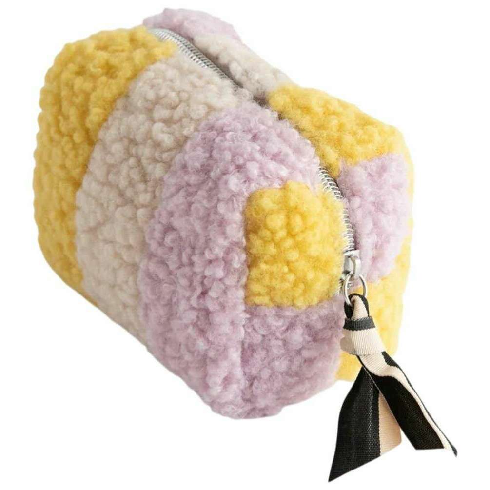 Caroline Gardner Multi Stripe Borg Mini Cube Cosmetic Bag - Lilac/Yellow