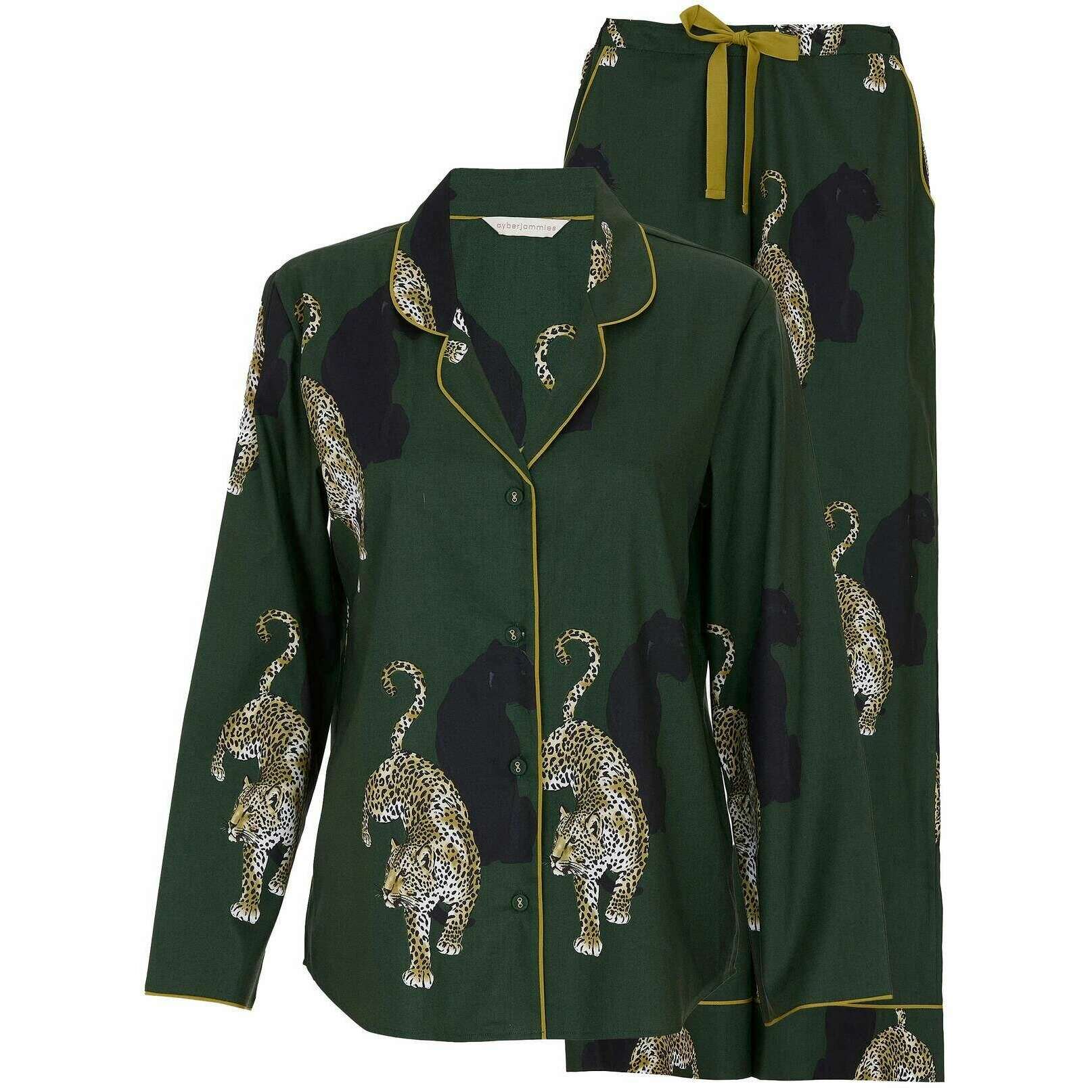 Cyberjammies Olive Leopard Print Long Sleeve Wide Leg Pyjama Set - Green/Gold
