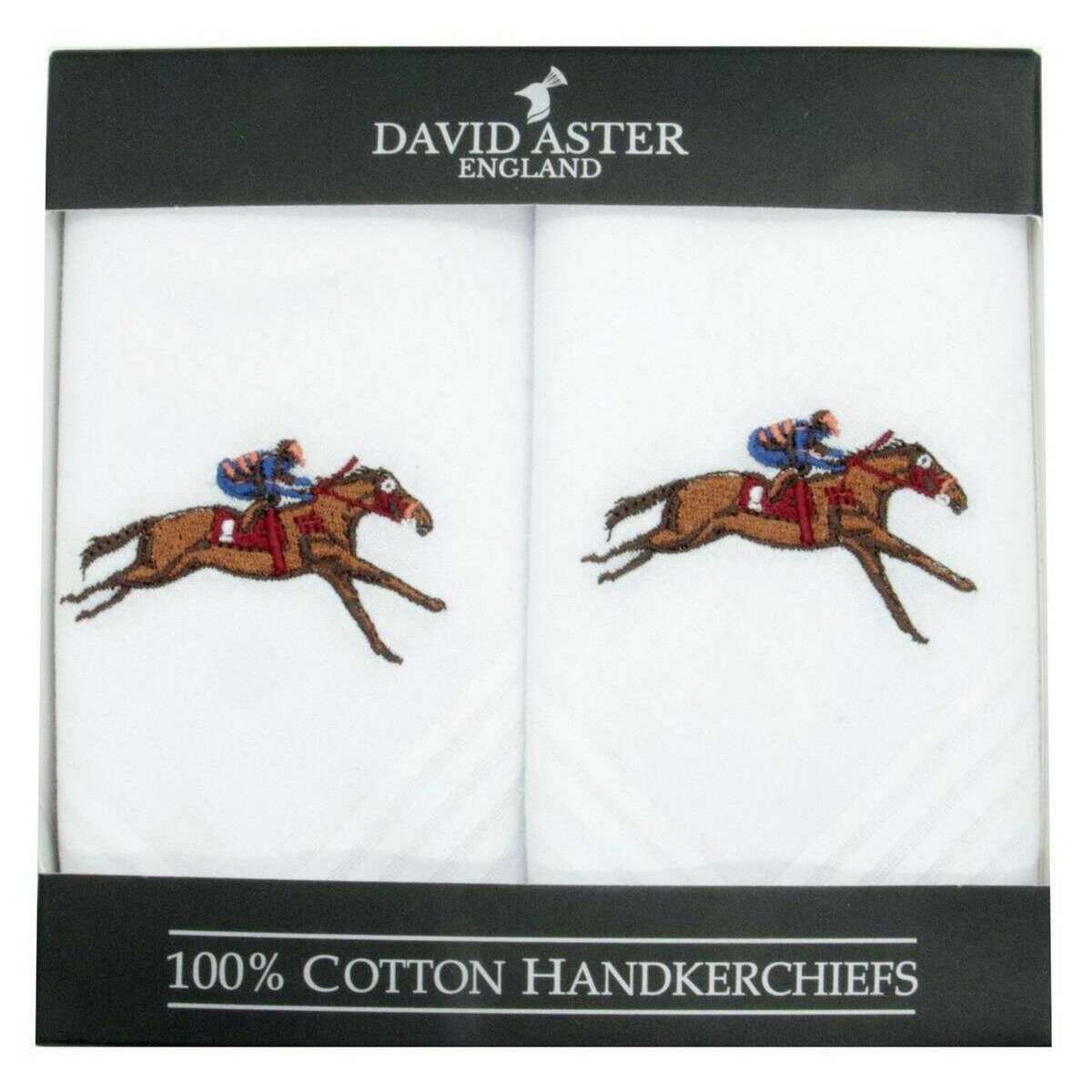David Aster Racehorse Embroidered Handkerchiefs - White