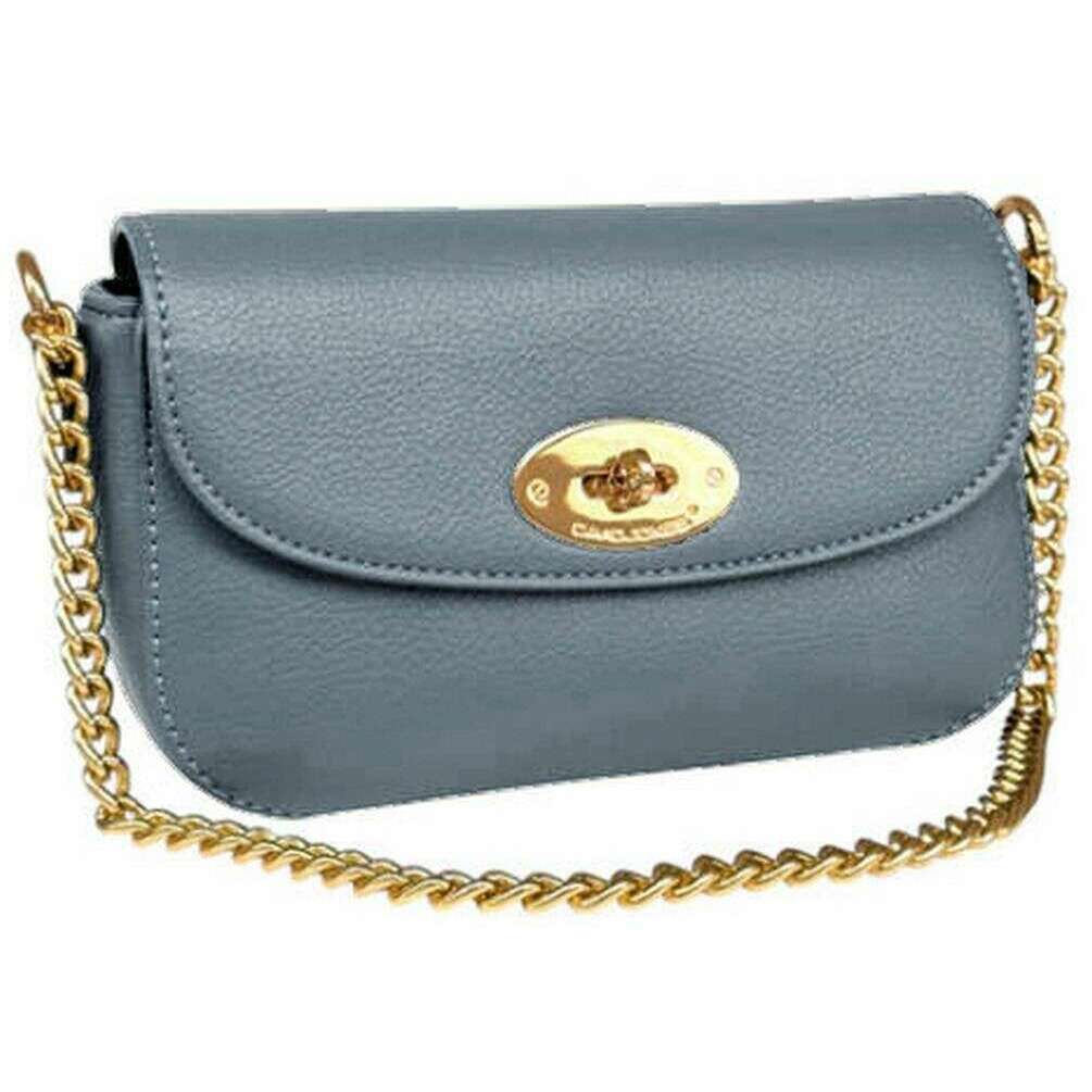 Introducing this women's occasion half flap shoulder bag by David Jones, it is manufactured from 100% polyurethane in a bering sea blue colour. It measures 13cm(height) x 20cm(width) x 6cm(depth). All the bags come complete with david jones packaging. The David Jones Occasion Half Flap Shoulder Bag - Bering Sea Blue is the perfect choice for occasions where you want to add a sophisticated and girly touch. The gold chain strap gives an expensive appeal perfect for dressing up any outfit, formal events or just for drinks with the girls, whilst the flap over design is kept in place by a typical metal turn lock giving the bag a unique, standout look. Featuring a zipper and open internal pocket ensures organisation for easy accessibility to your smaller precious belongings. Even though this bag may look small it is deceiving as this bag holds all your essentials you need when on the go.