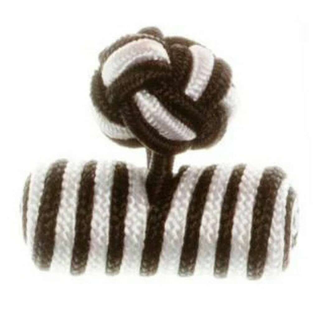 These men's barrel cuff knots by the brand David Van Hagen are made from silk and are showcased in white. All the cufflinks come complete with david van hagen packaging. The David Van Hagen Barrel Cuff Knots - Black/White are an unusual alternative to the usual cufflink, these cuff knots feature a black and white barrel design, which makes them extra special, especially as a gift for a gentleman who enjoys formal but unique wear.
