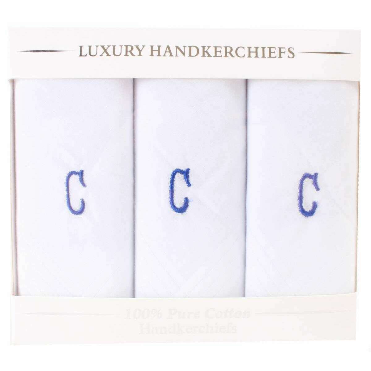 David Van Hagen C Initial 3 Pack Handkerchief - White/Blue