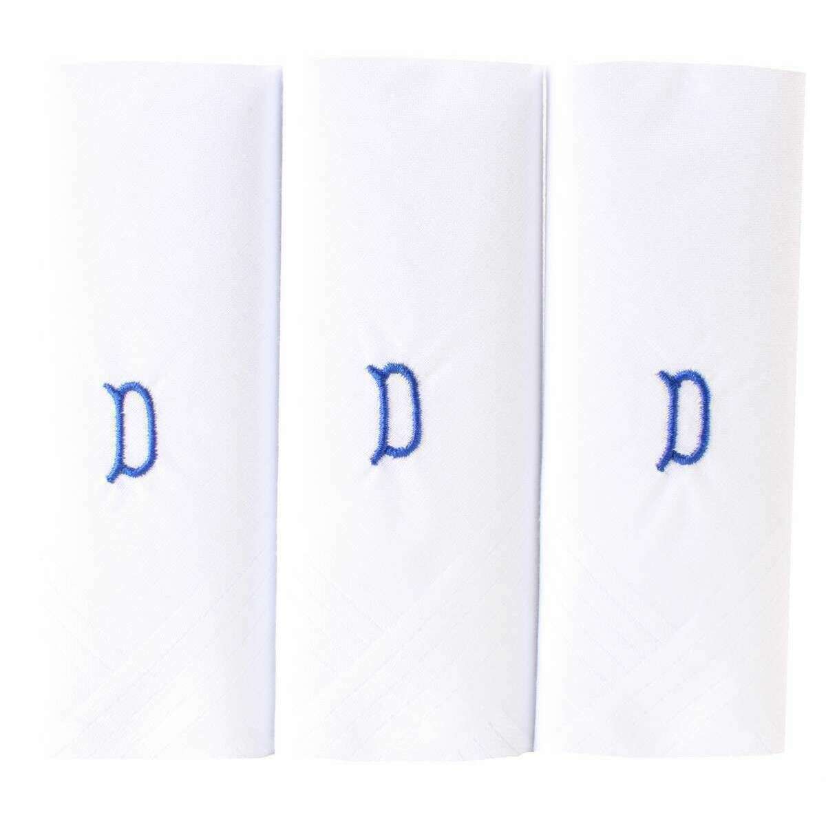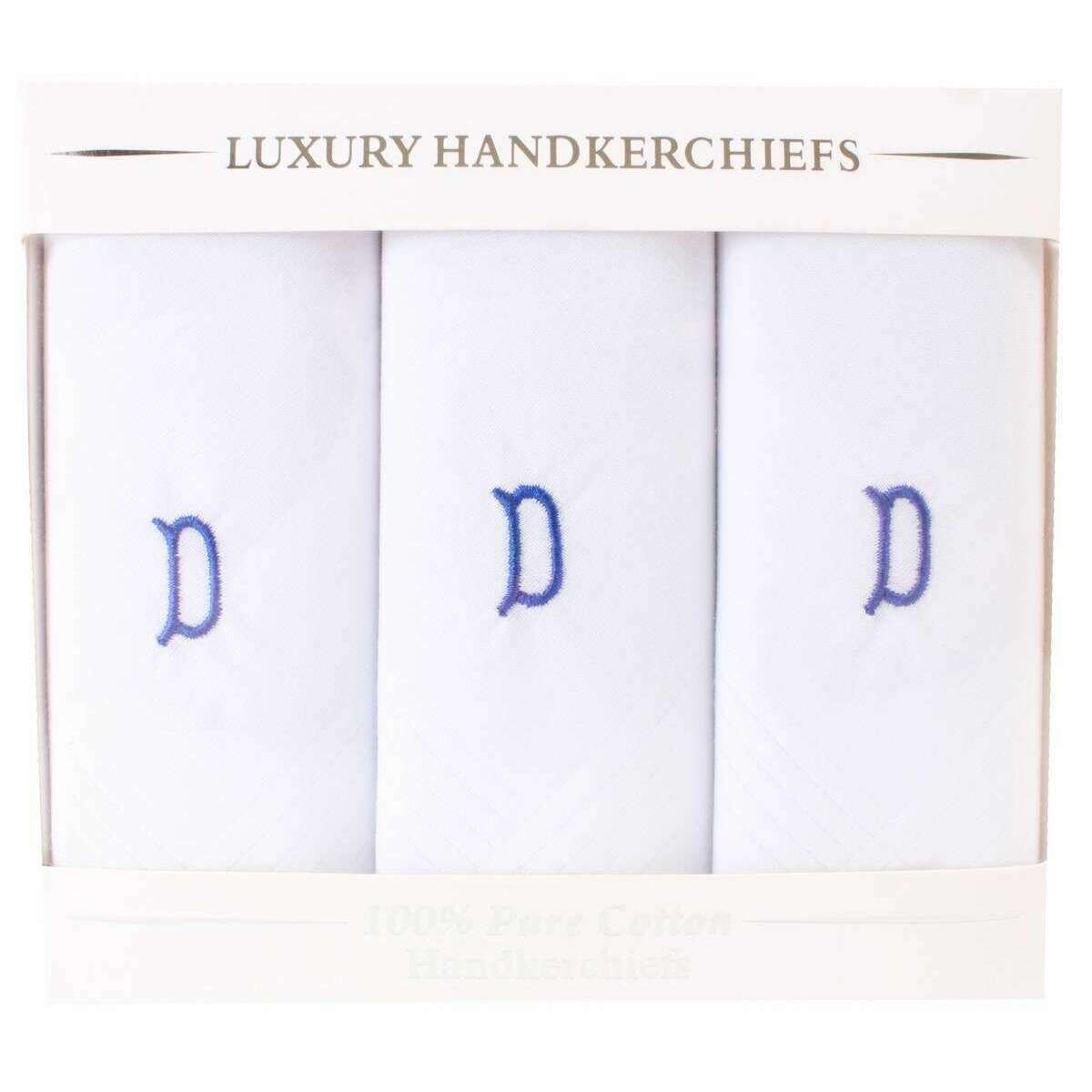 David Van Hagen D Initial 3 Pack Handkerchief - White/Blue
