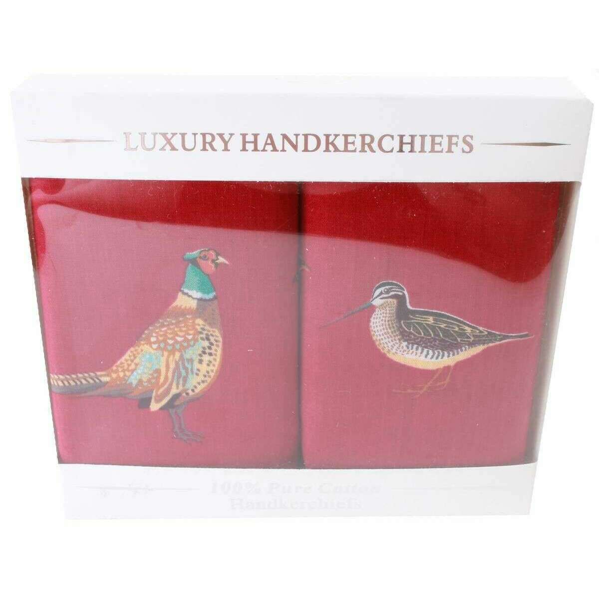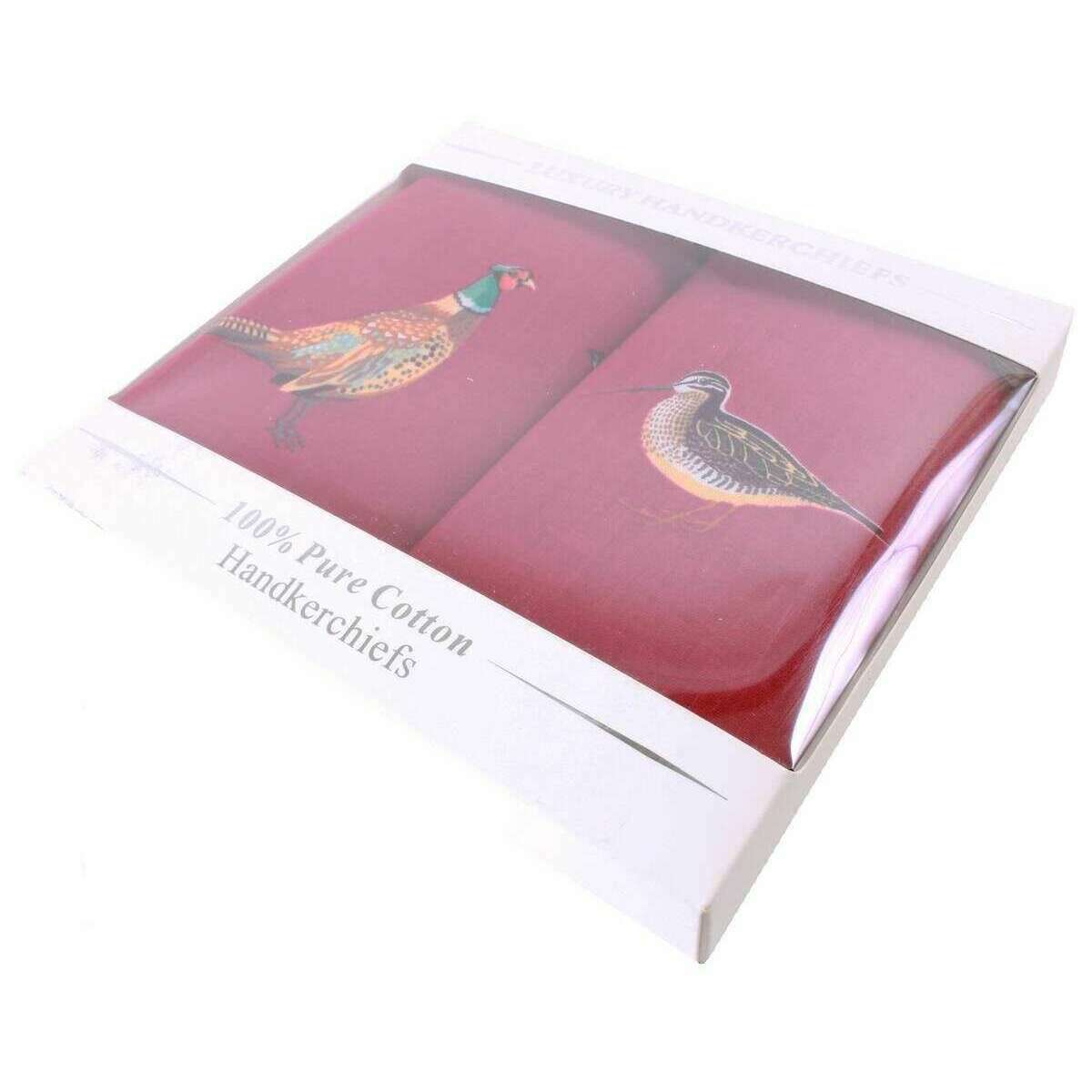 David Van Hagen Game Birds 2 Pack Handkerchief - Burgundy