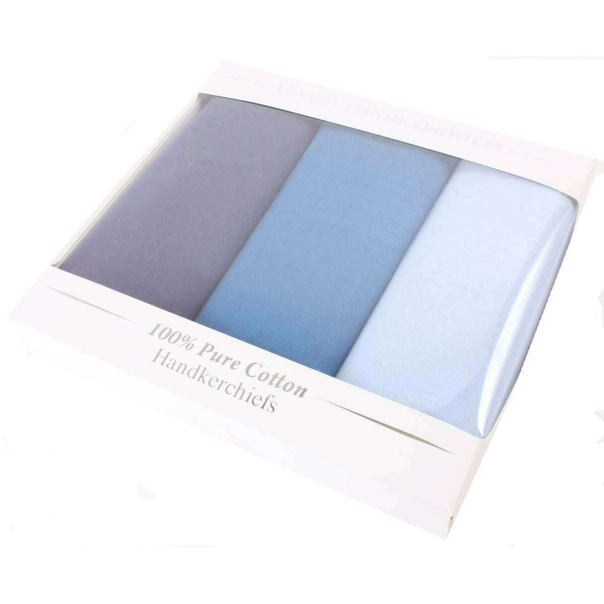 David Van Hagen Plain 3 Pack Handkerchief - Blue