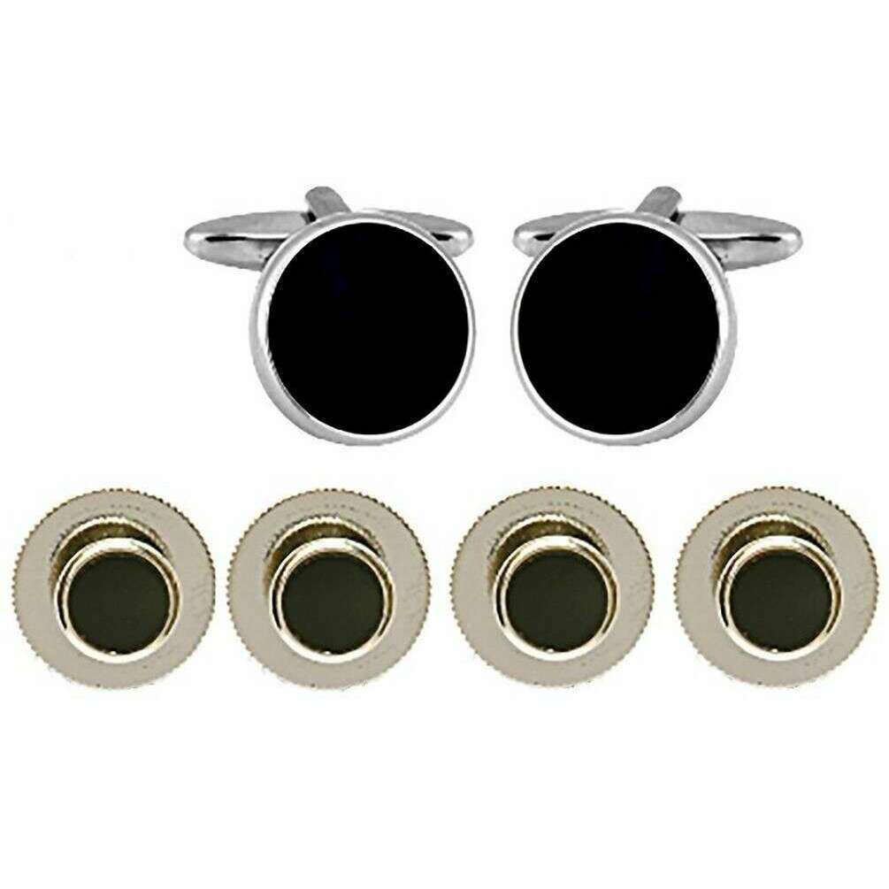 David Van Hagen Round Cufflinks and Dress Stud Set - Black/Silver