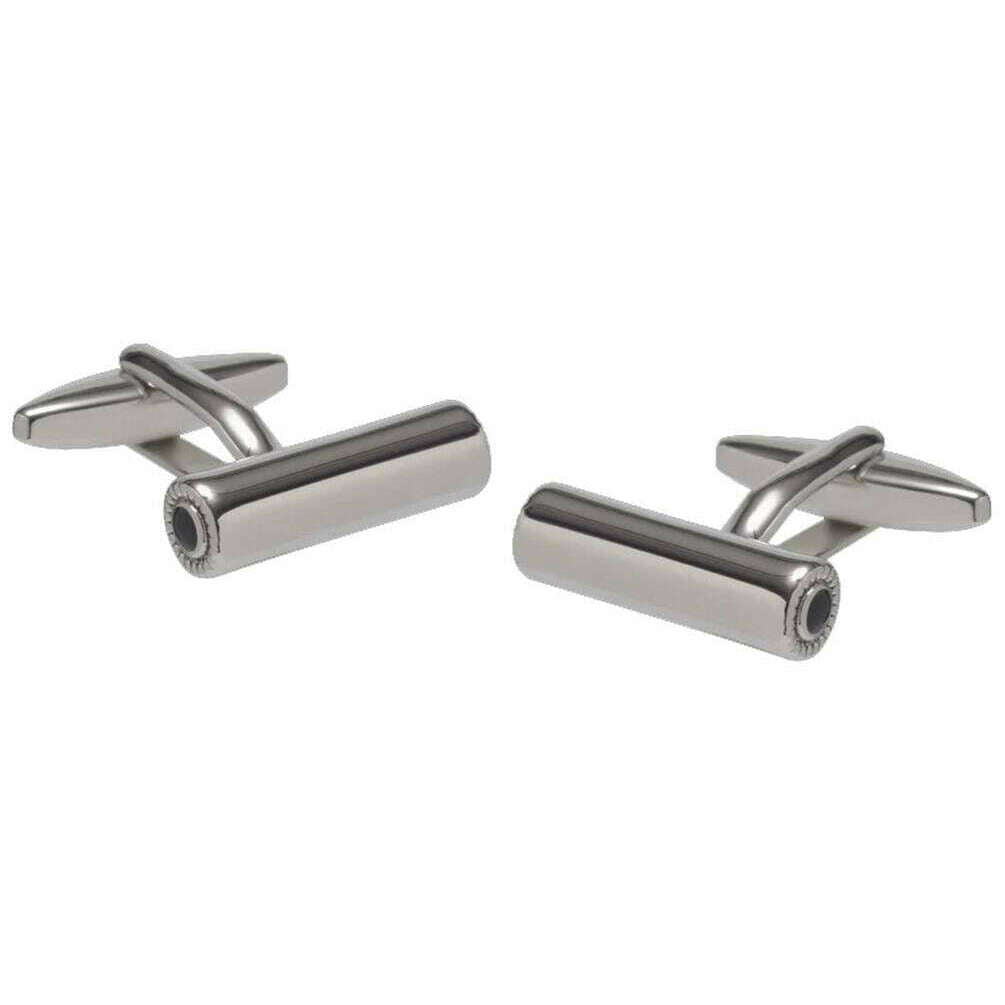 These well made men's tube cufflinks from David Van Hagen come in a silver colour and are manufactured from base metal. All the cufflinks come complete with david van hagen packaging. The David Van Hagen Tube Cufflinks - Silver feature a stunning silver tube design with black detailing, making them the perfect accessory to any formal outfit.
