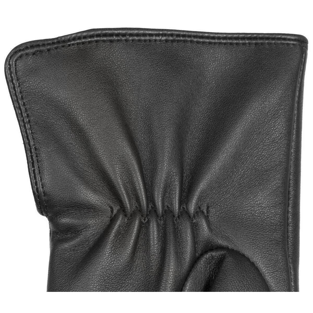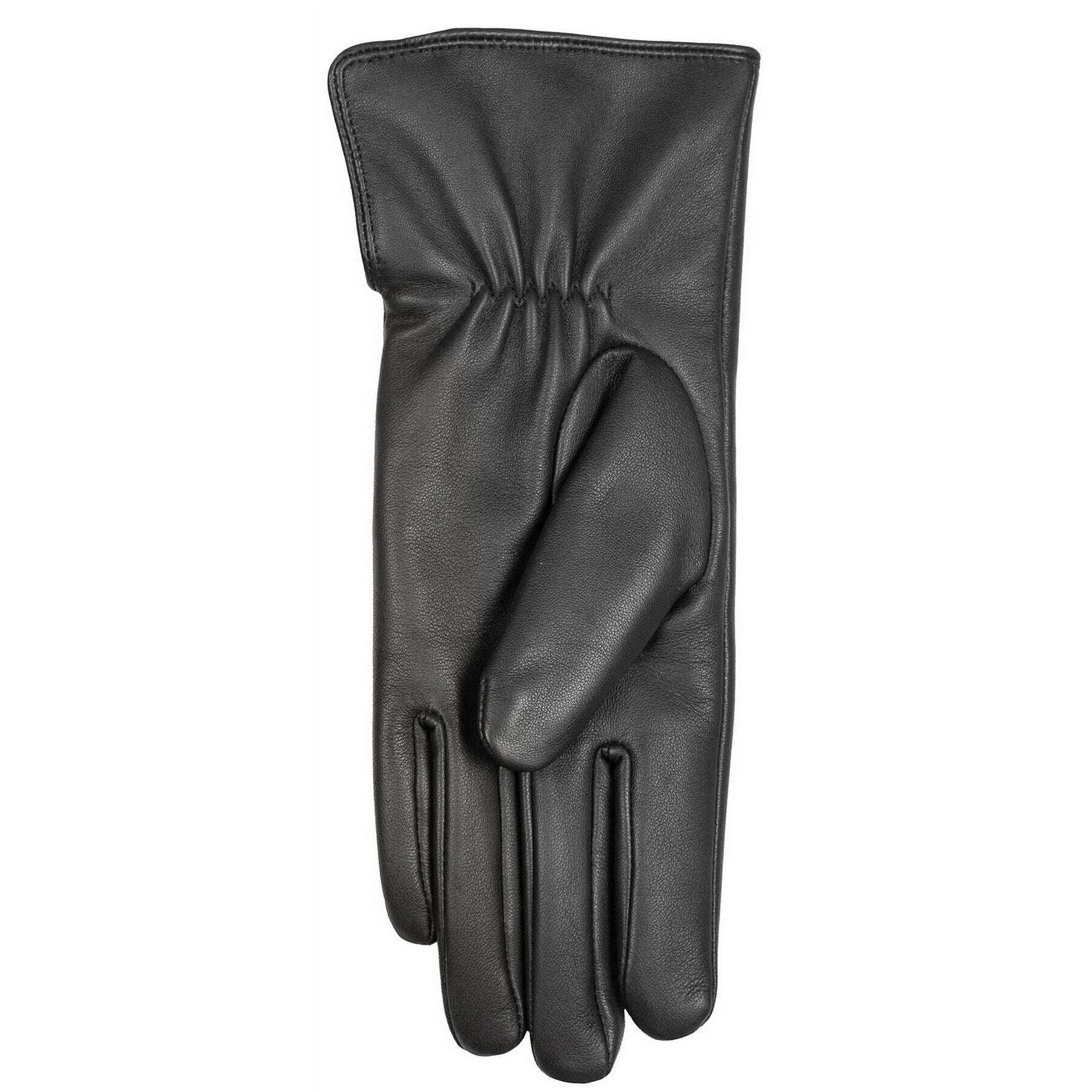 These women's agata water-resistant leather gloves by the brand Dents are made from 100% hairsheep leather and polyester faux fur lining and are showcased in black. Also the black gloves are designed in a plain pattern, All the gloves come complete with dents tags. The Dents Agata Water-Resistant Leather Gloves - Black are a luxurious and elegant accessory, perfect for adding sophistication and comfort to any outfit. The interior of these gloves are lined with soft faux fur which adds a layer of warmth and enhances comfort, making the gloves a pleasure to wear. This pair features touchscreen technology enabling you to go on your phone without compromising warmth. These gloves are an ideal accessory for those looking to add a touch of elegance and practicality to their cold-weather wardrobe.
