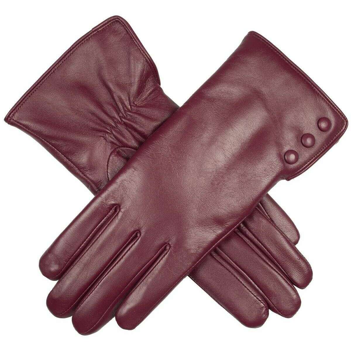 These women's agata water-resistant leather gloves have been made from 100% hairsheep leather and polyester faux fur lining, featured in a burgundy colour and are from the brand Dents. Also the damson burgundy gloves are designed in a plain pattern, All the gloves come complete with dents tags. The Dents Agata Water-Resistant Leather Gloves - Damson Burgundy are a luxurious and elegant accessory, perfect for adding sophistication and comfort to any outfit. The interior of these gloves are lined with soft faux fur which adds a layer of warmth and enhances comfort, making the gloves a pleasure to wear. This pair features touchscreen technology enabling you to go on your phone without compromising warmth. These gloves are an ideal accessory for those looking to add a touch of elegance and practicality to their cold-weather wardrobe.