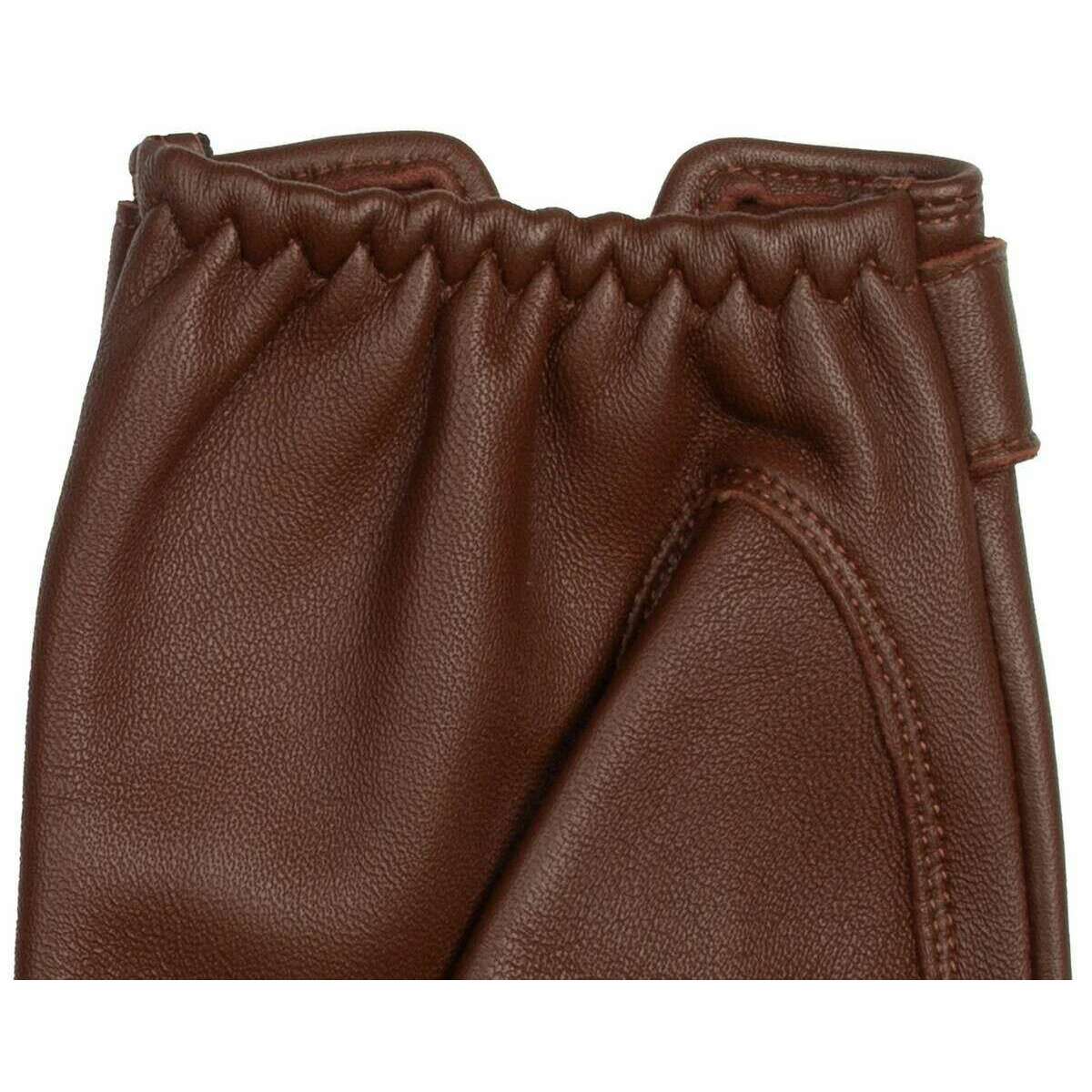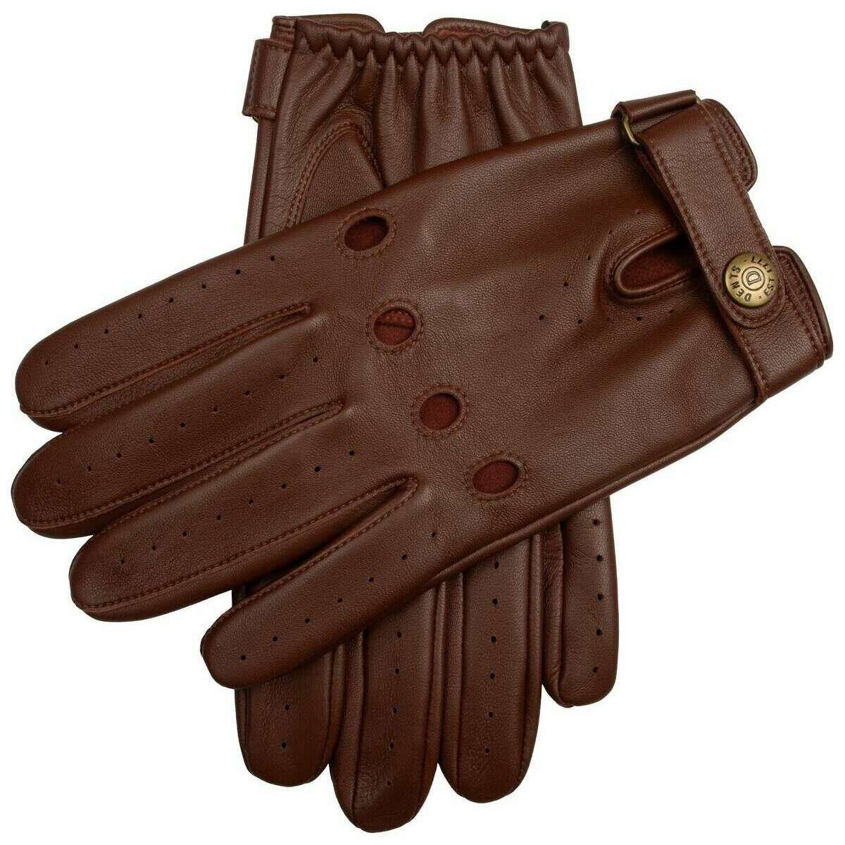 Perfect for men are these Dents english tan brooklands leather driving gloves, they are also made from 100% hairsheep leather. Also the english tan gloves are designed in a plain pattern, All the gloves come complete with dents tags. The Dents Brooklands Leather Driving Gloves - English Tan offer a twist from the usual driving glove as they don t feature the cut-out backs, giving them a unique finish. The gloves feature intricate details such as perforated holes throughout the fingers and palms, knuckle holes and inseam stitching for a clean finish. It has a centre-closing wrist strap with elasticated wrists and Dents fastener stud to give the wearer a secure and comfortable fit.