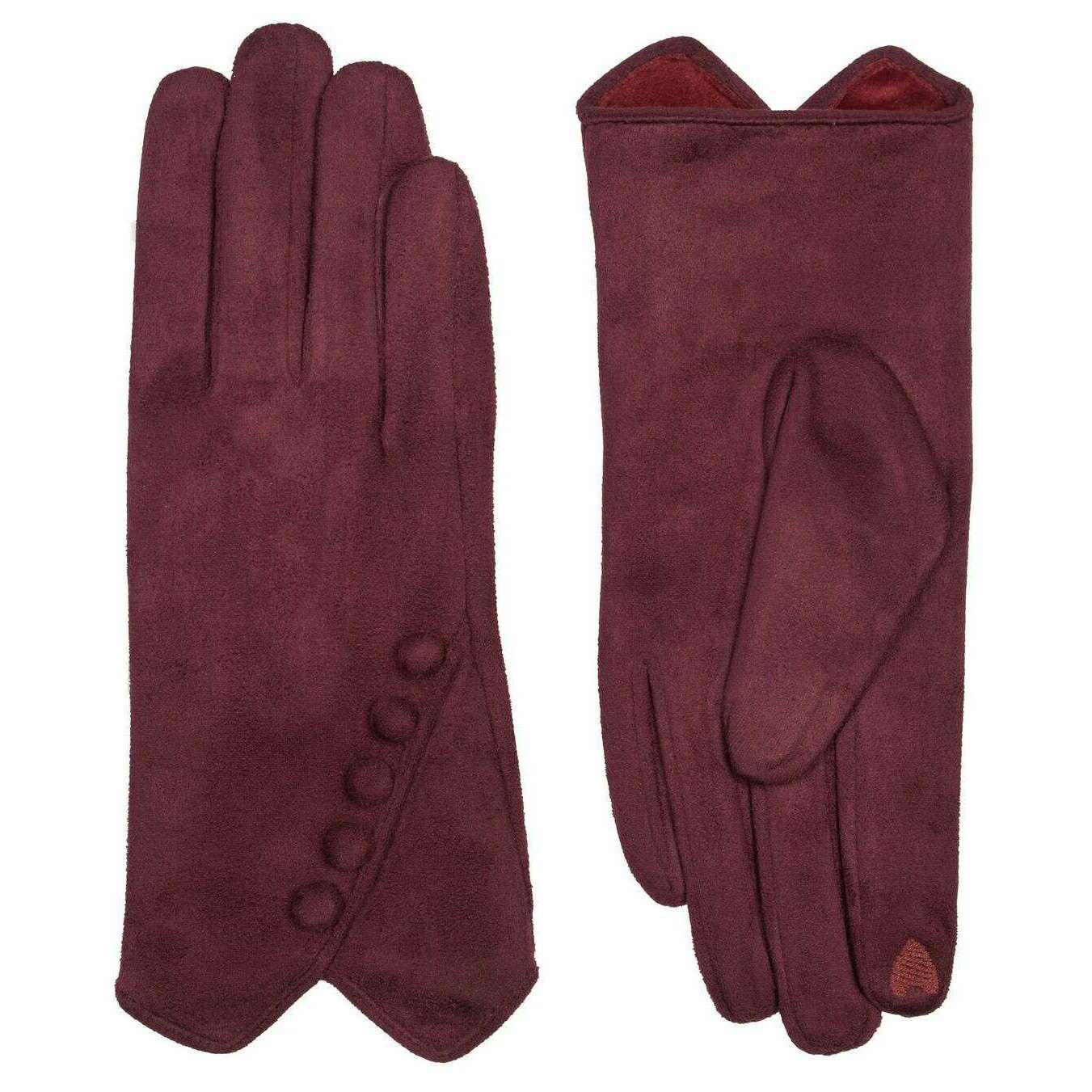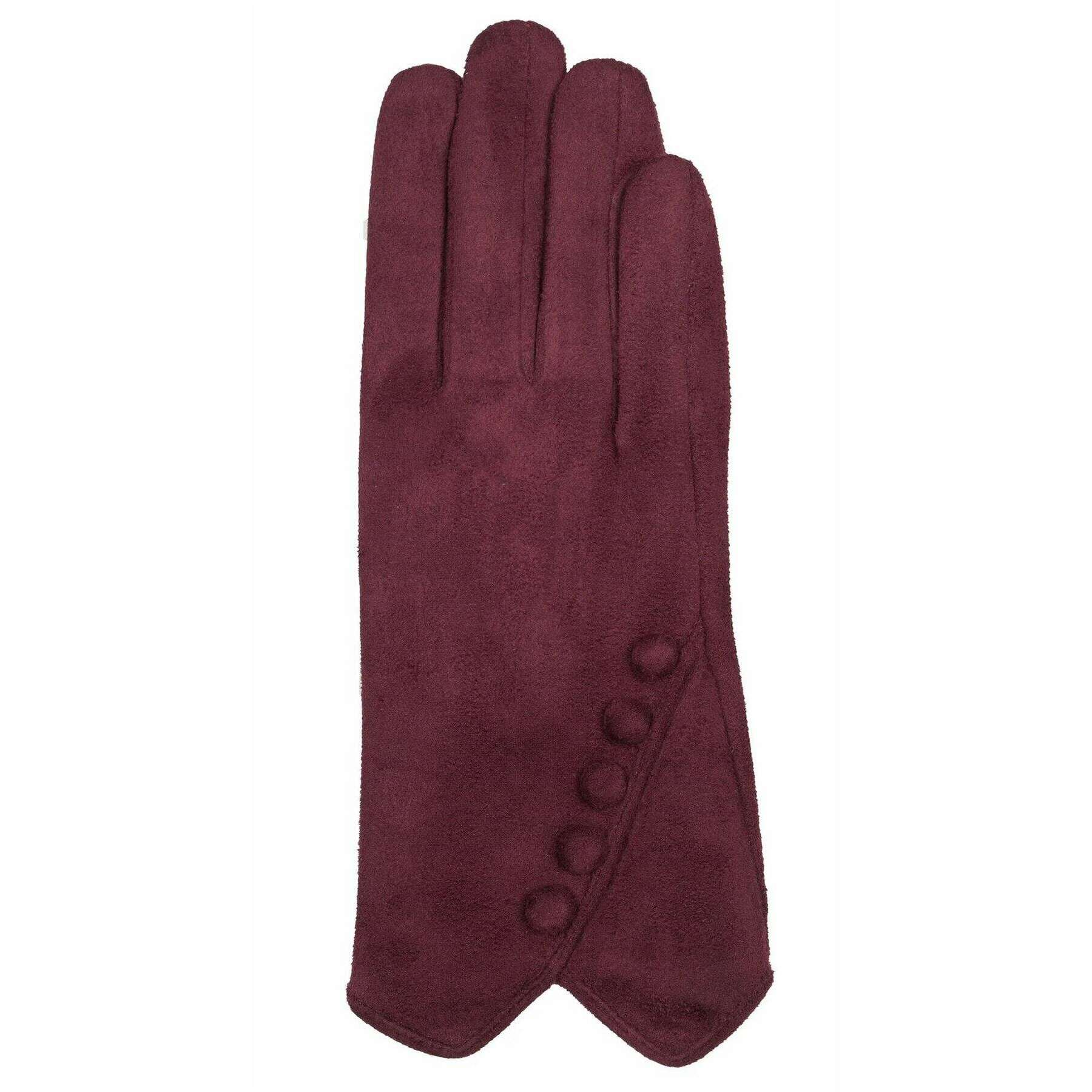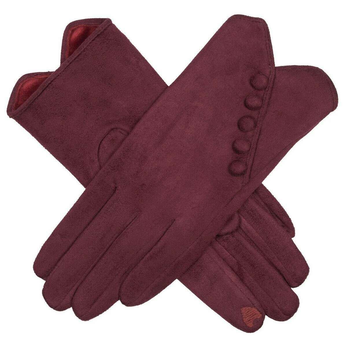 Dents Buttoned Faux Suede Gloves - Damson Burgundy