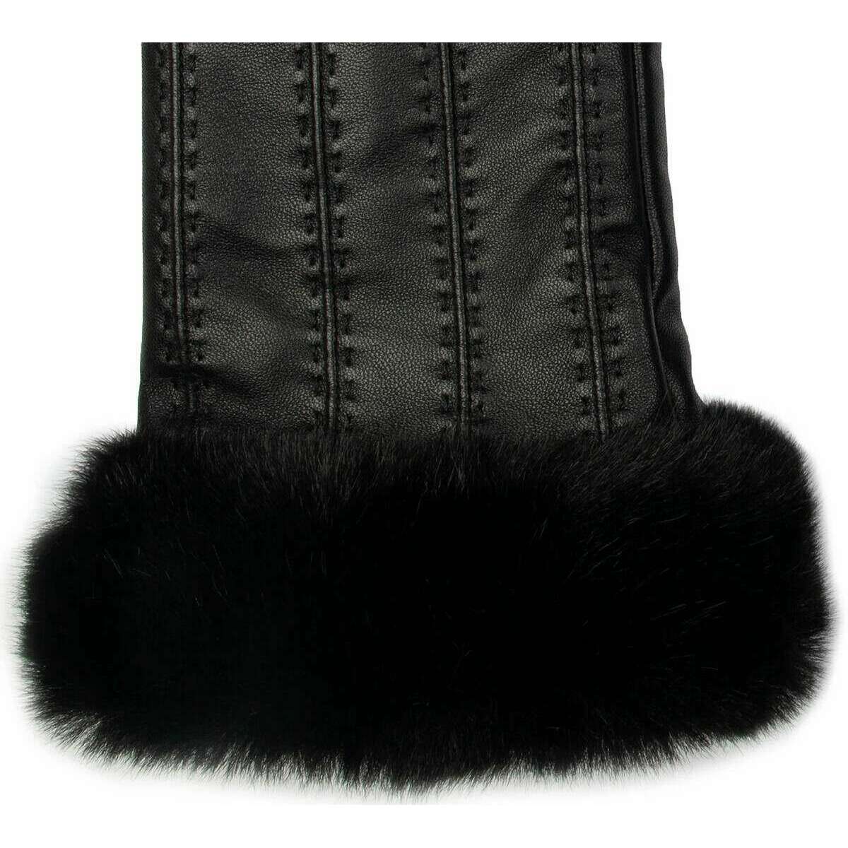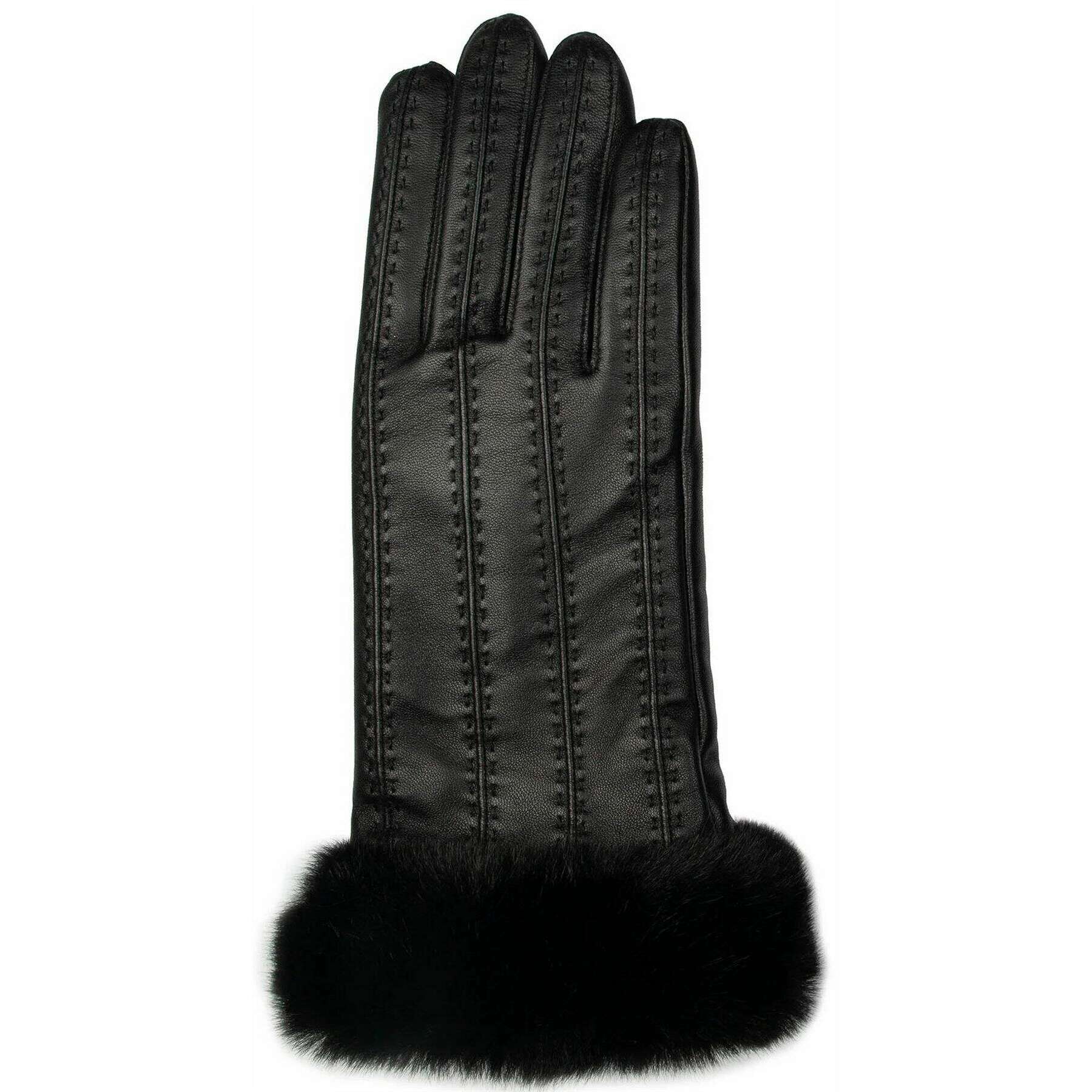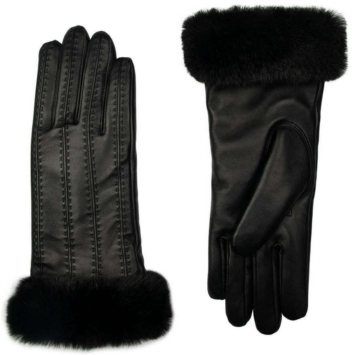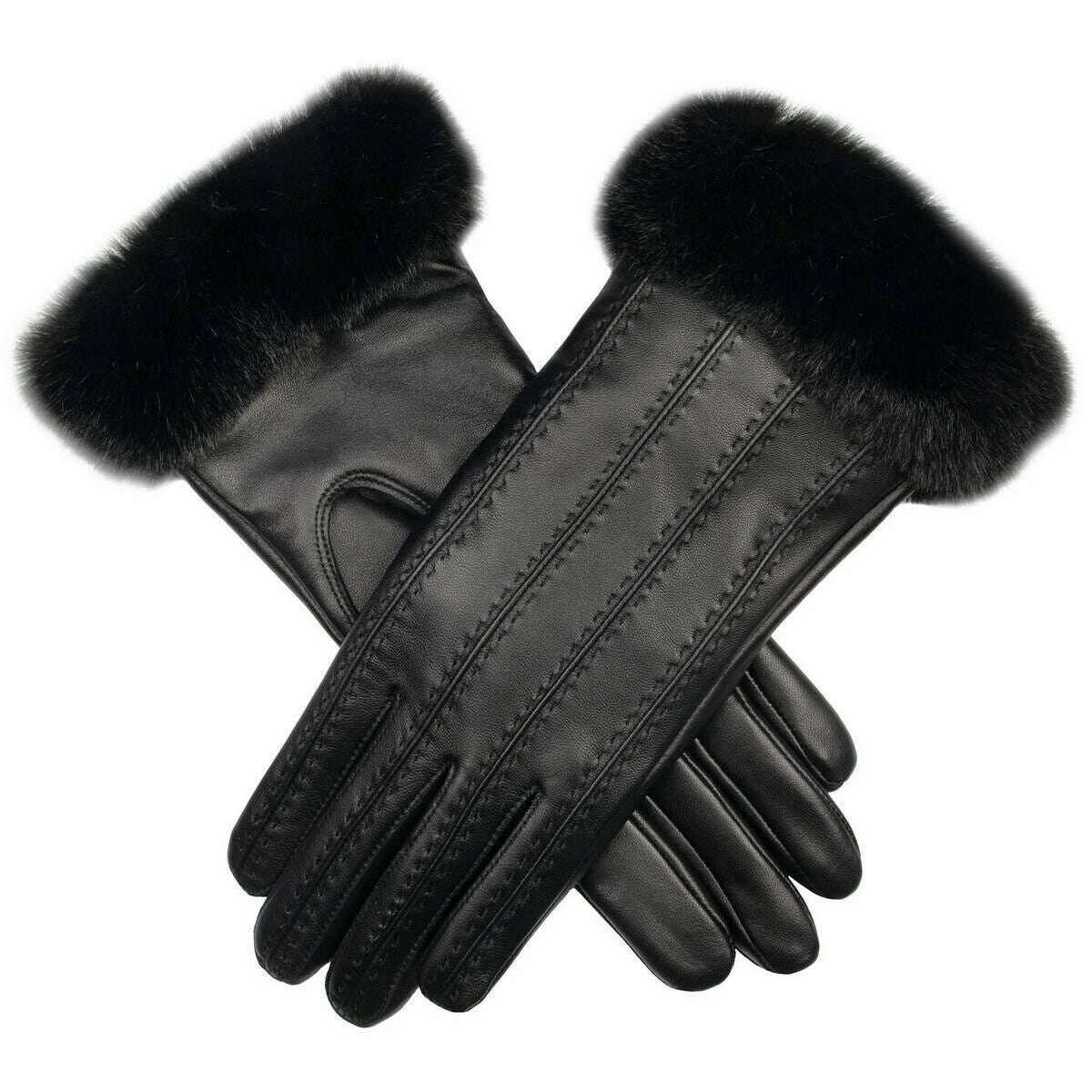 These women's cassie contrast stitching leather gloves by the brand Dents are made from 100% hairsheep leather and polyester faux fur lining and are showcased in black. Also the black gloves are designed in a plain pattern, All the gloves come complete with dents tags. The Dents Cassie Contrast Stitching Leather Gloves - Black are a glamorous choice that will have you looking chic and stylish on your winter outings. The faux fur cuffs give you the luxurious look without the conscious of any animals being used. They are lined with more faux fur, giving your hands a stunning soft and cosy shield against the winter elements. This pair is completed with a decorative vertical stitch design giving a timeless sophisticated appeal.