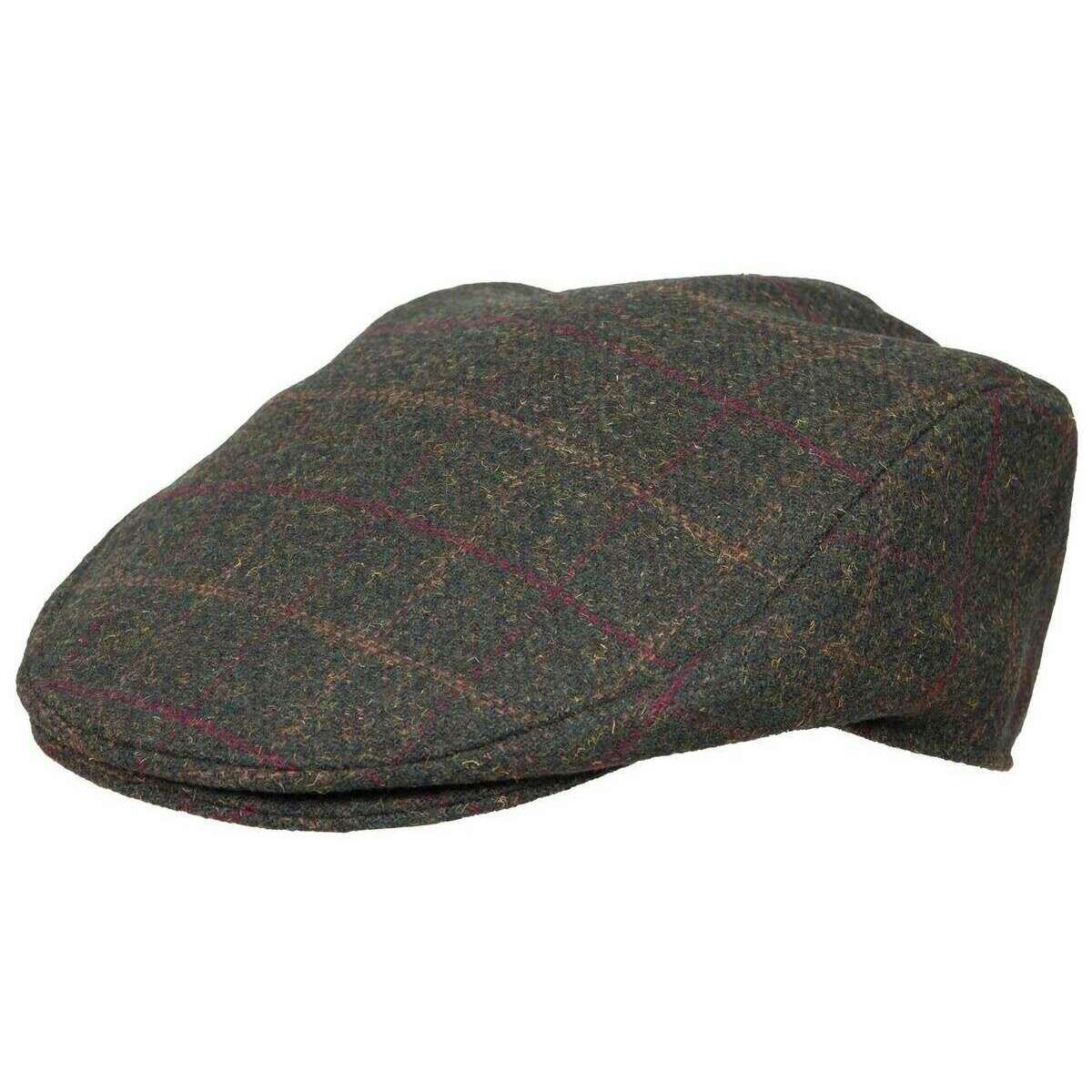 Dents Colliford Check Tweed Flat Cap - Olive Green