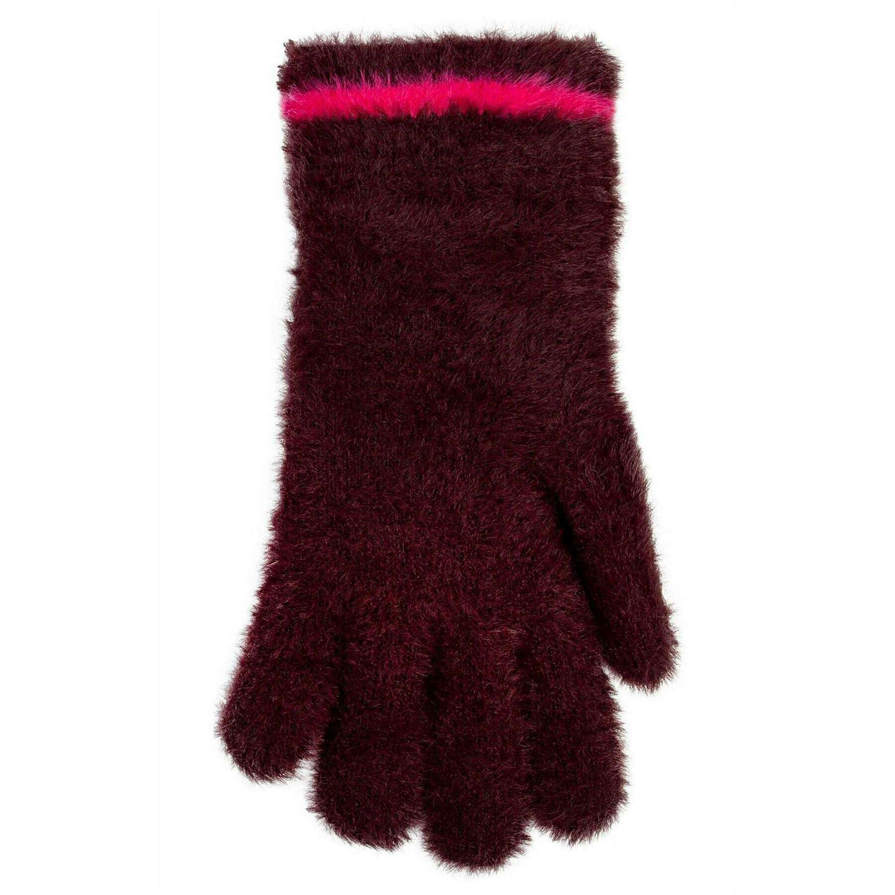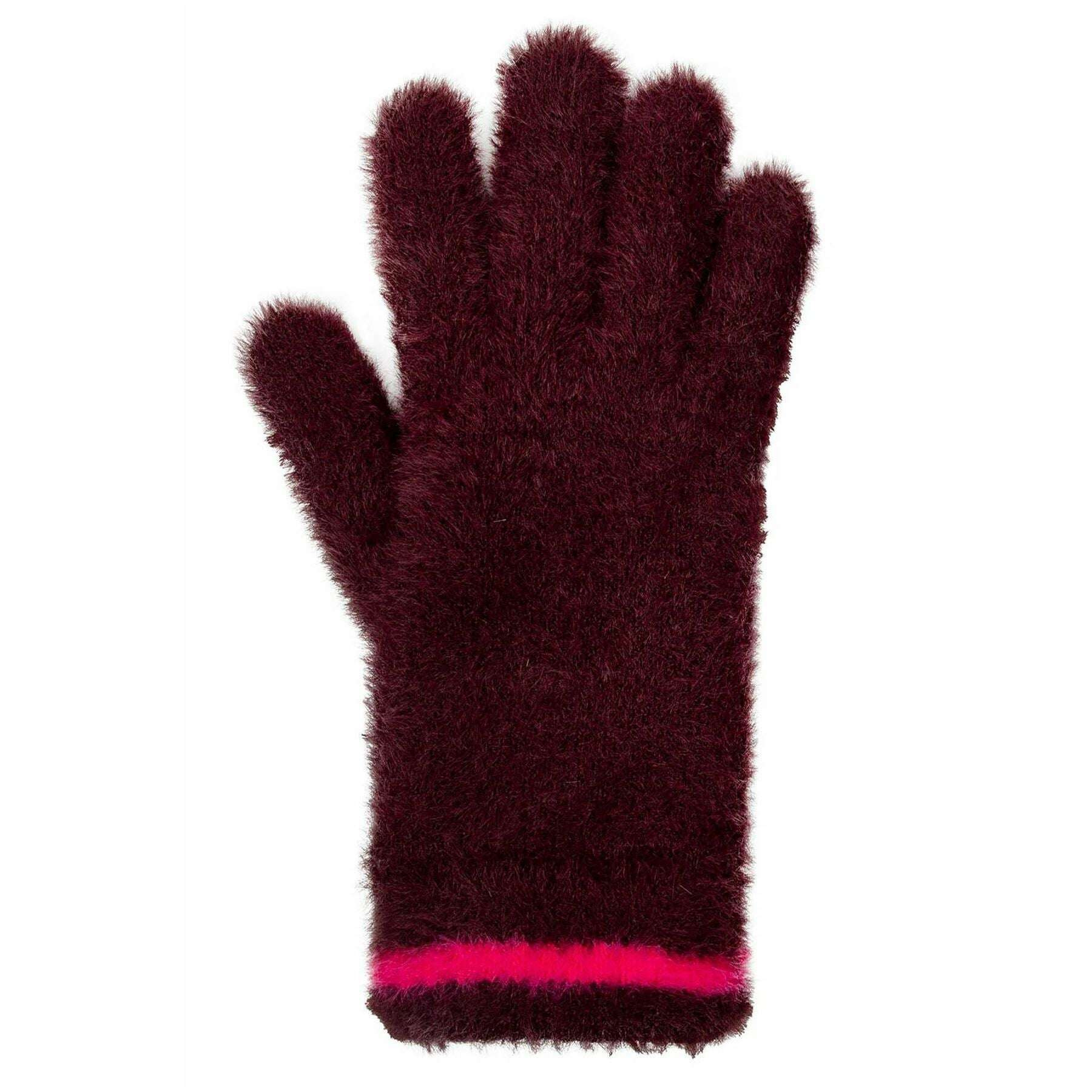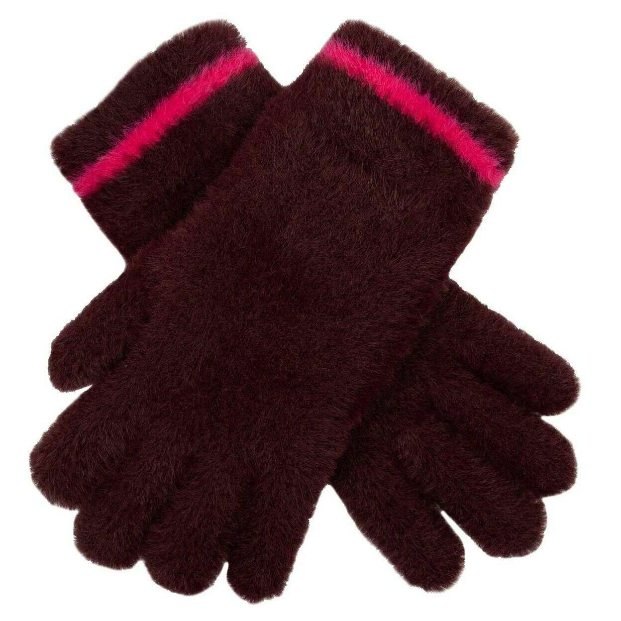 Dents Feather Yarn Knitted Gloves - Burgundy/Pink