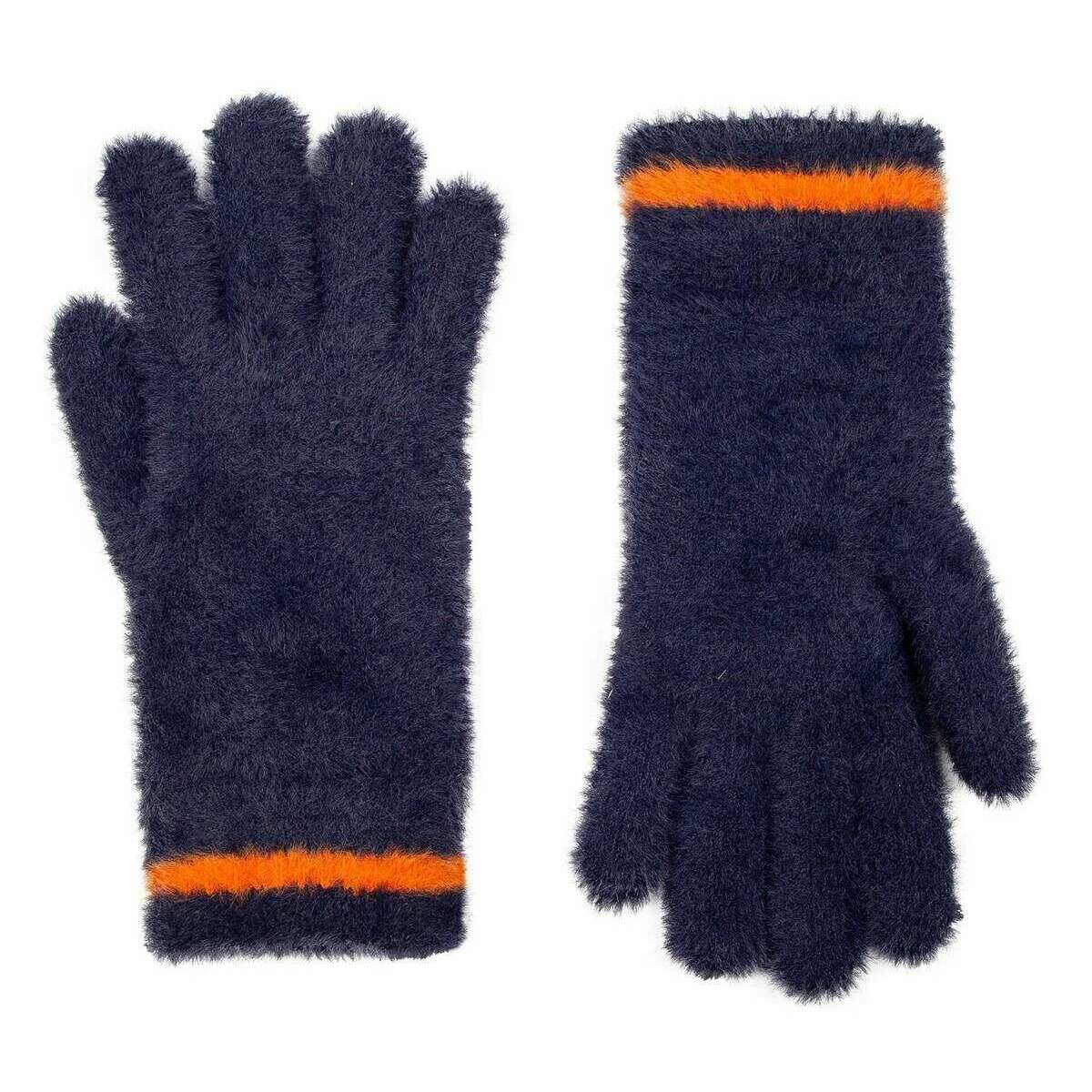Dents Feather Yarn Knitted Gloves - Navy/Orange