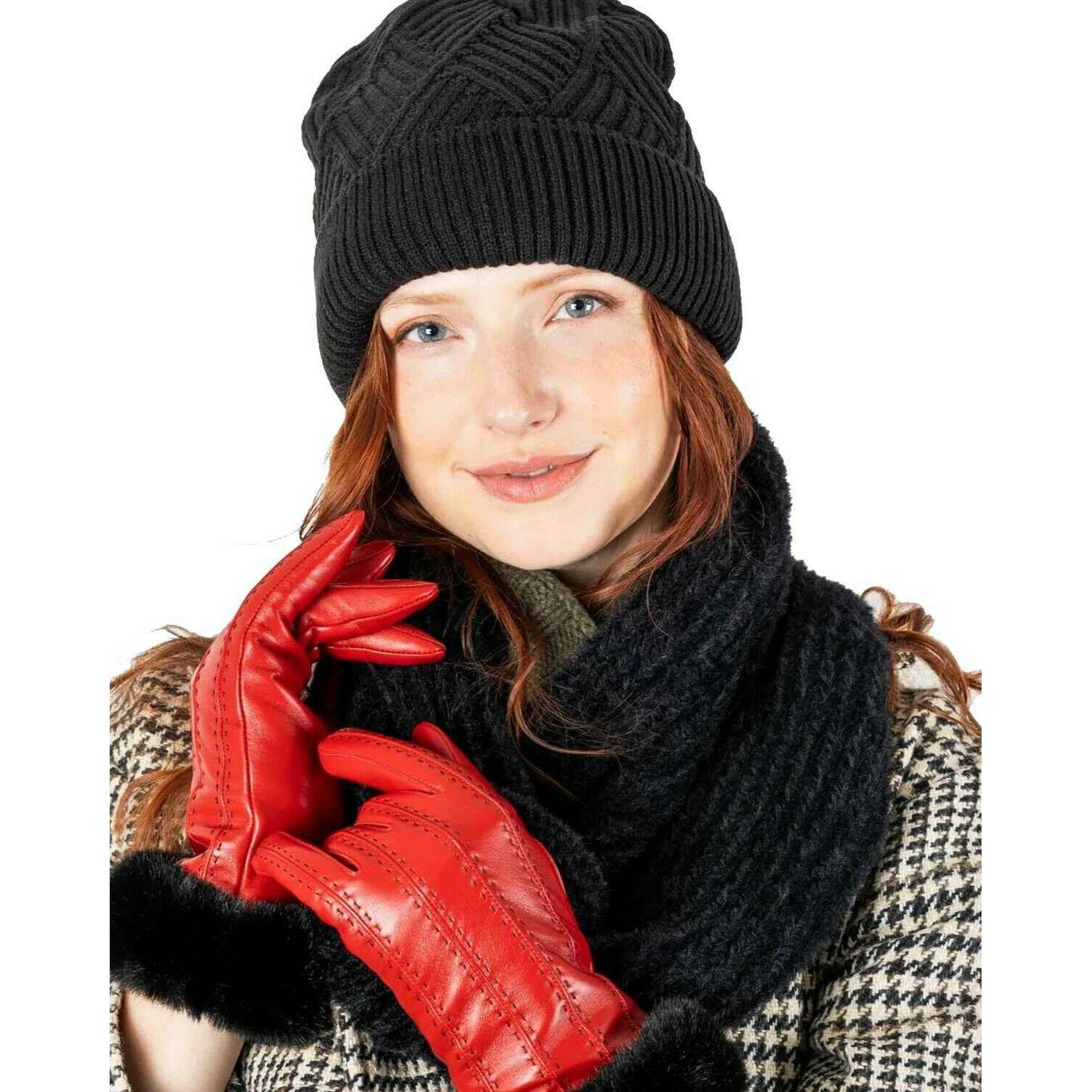 Dents Feather Yarn Knitted Snood - Black