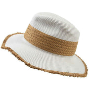 Dents Frayed Edge Straw Fedora Hat - White/Natural Beige