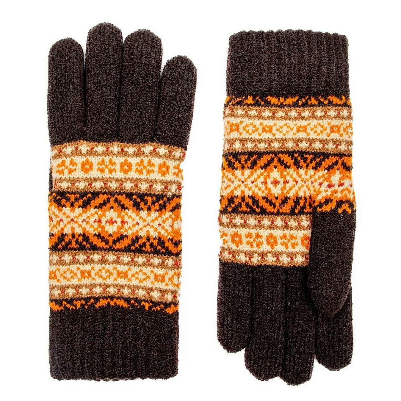 Manufactured from 80% acrylic and 20% nylon are these chocolate brown women's jacquard fair isle knitted gloves by the designer Dents. Also the chocolate brown gloves are designed in a plain pattern, It is recommended to hand wash only to keep these gloves in good condition. All the gloves come complete with dents tags. The Dents Jacquard Fair Isle Knitted Gloves - Chocolate Brown feature a dark chocolate brown colour with orange, cream and light brown detailing s. Perfect for a wintery day due to the insulating materials within these gloves. The design on these gloves gives them a unique and wintery feel, which suite any occasion. The ribbed cuff guarantees a secure and comfortable fit.