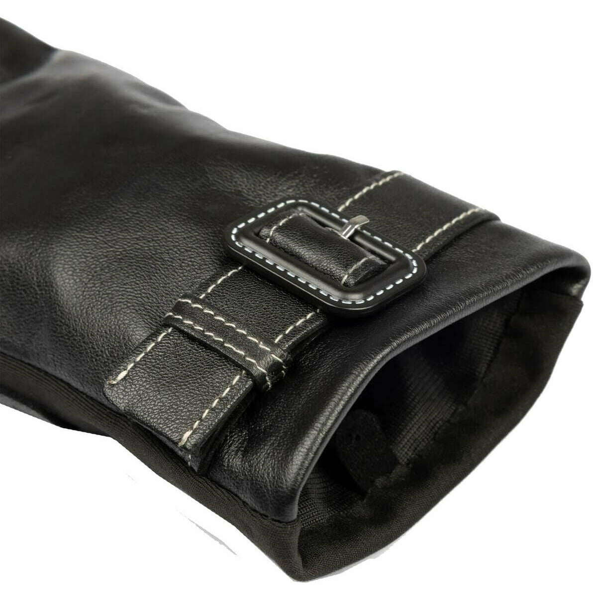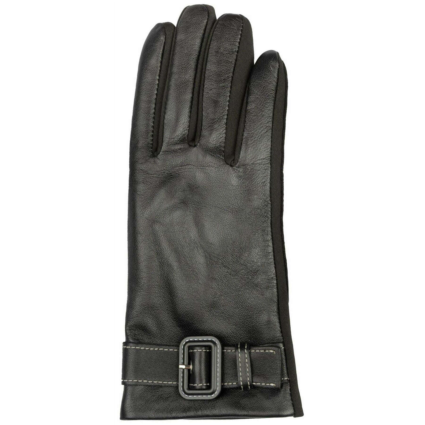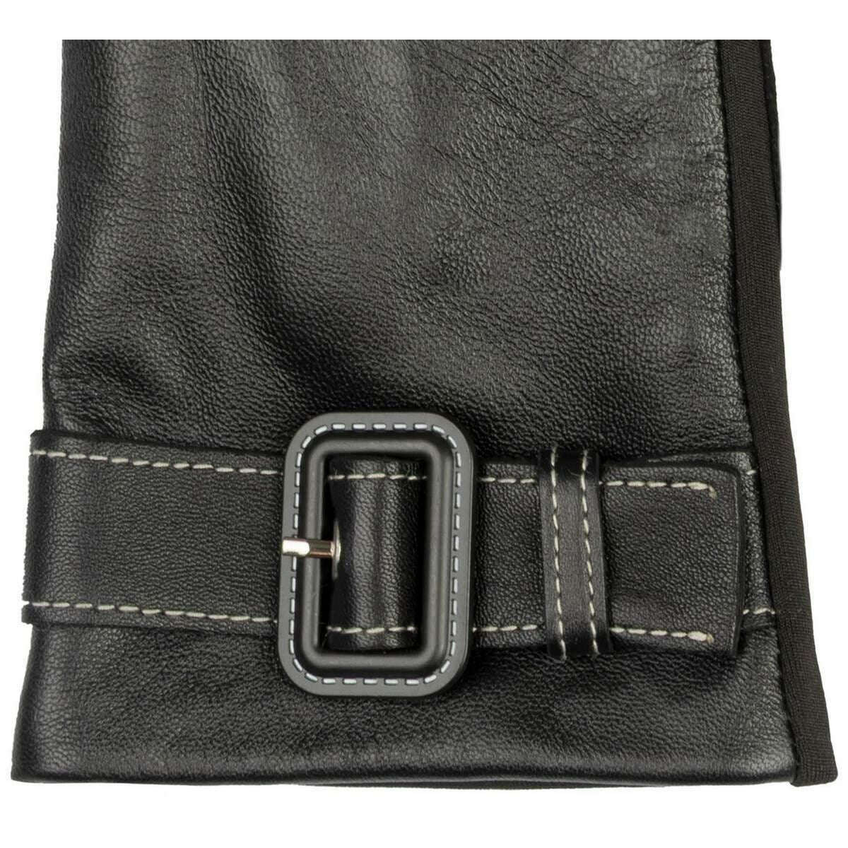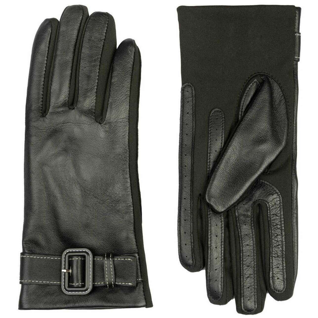 These women's lyla leather backed water-resistant gloves by the brand Dents are made from 100% polyester inseam and are showcased in black. Also the black gloves are designed in a plain pattern, All the gloves come complete with dents tags. The Dents Lyla Leather Backed Water-Resistant Gloves - Black are a great choice for a high-end and luxurious look. They feature a stretch polyester palm for a modern silhouette, as well as a comfortable wear and a water-resistant leather to keep your hands protected from the cold rain. To ensure a clean finish the seams are hidden thanks to inseam stitching. Completing this pair is the contrast stitching leather buckle at the wrist.