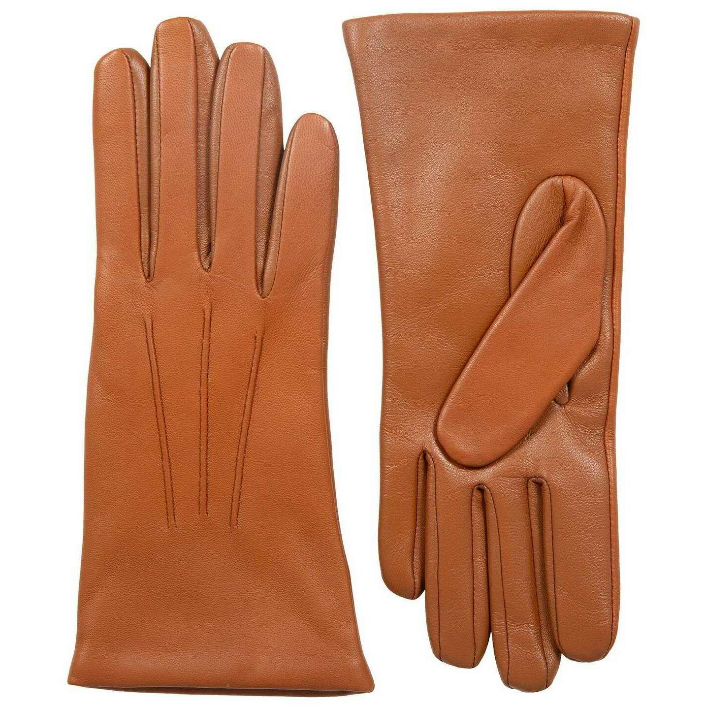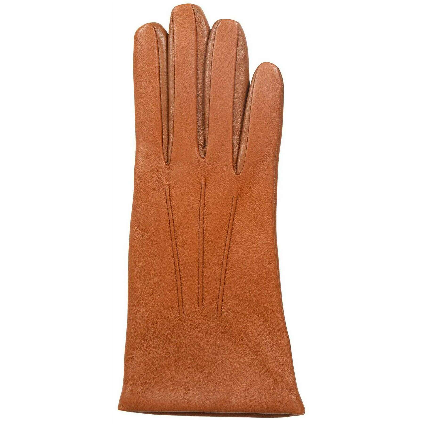 Manufactured from 100% hairsheep leather and cashmere lining are these cognac tan women's maisie cashmere lined touchscreen leather gloves by the designer Dents. Also the cognac tan gloves are designed in a plain pattern, All the gloves come complete with dents tags. The Dents Maisie Cashmere Lined Touchscreen Leather Gloves - Cognac Tan are a luxurious and elegant accessory, perfect for adding sophistication and comfort to any outfit. The interior of these gloves is lined with smooth, luxurious cashmere which adds a layer of warmth and enhance comfort, making the gloves a pleasure to wear. The added touchscreen feature makes these gloves an ideal accessory for those looking to add a touch of elegance and practicality to their cold-weather wardrobe.