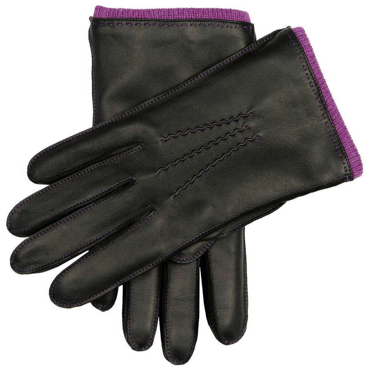 Dents Mottram Heritage Cashmere Lined Leather Gloves - Black/Purple