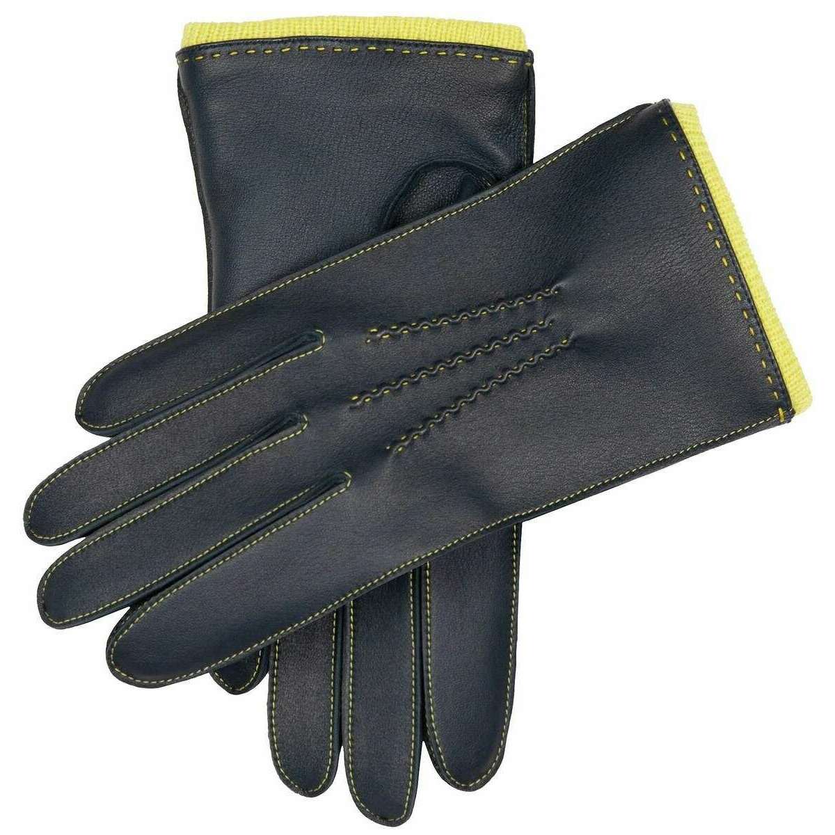Dents Mottram Heritage Cashmere Lined Leather Gloves - Navy/Apple Green
