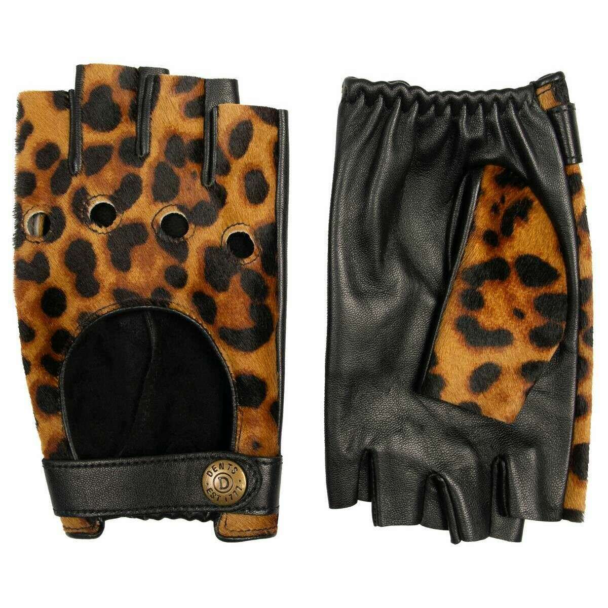 Manufactured from 100% pony skin leather are these leopard/black women's nyla half finger driving gloves by the designer Dents. Also the leopard/black gloves are designed in a unique pattern, All the gloves come complete with dents tags. The Dents Nyla Half Finger Driving Gloves - Leopard/Black are perfect for a sleek and stylish look while behind the wheel. The unlined design offers a closer fit, while the knuckle holes and keyhole back adds decorative touches whilst being practical. The elasticated wrists ensure a secure and comfortable wear, while the cut-out backs provide ventilation and flexibility. Drive in style with these chic and practical gloves.