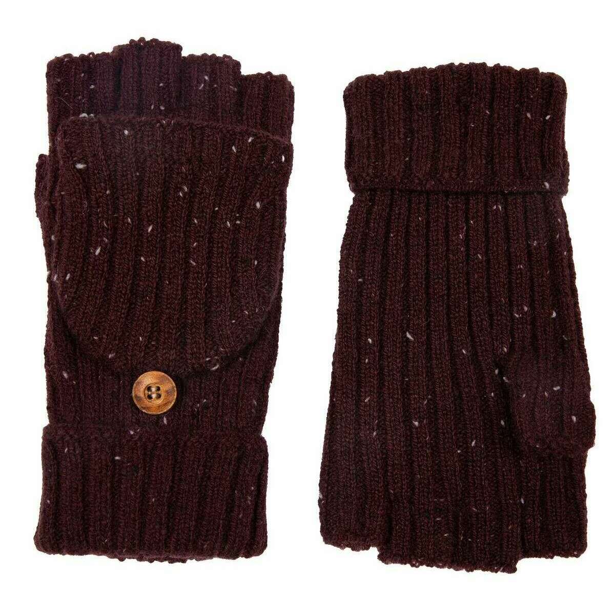 These women's ribbed knit fingerless gloves by the brand Dents are made from 50% acrylic, 30% wool and 20% nylon and are showcased in burgundy. Also the burgundy gloves are designed in a plain pattern, It is recommended to hand wash only to keep these gloves in good condition. All the gloves come complete with dents tags. The Dents Ribbed Knit Fingerless Gloves - Burgundy are an ideal choice for all winter occasions with an eye-catching burgundy colour. These practical gloves come with a fingerless design and a mitten flap for when you want extra warmth. Perfect for winter activities and will look beautiful with any outfit.