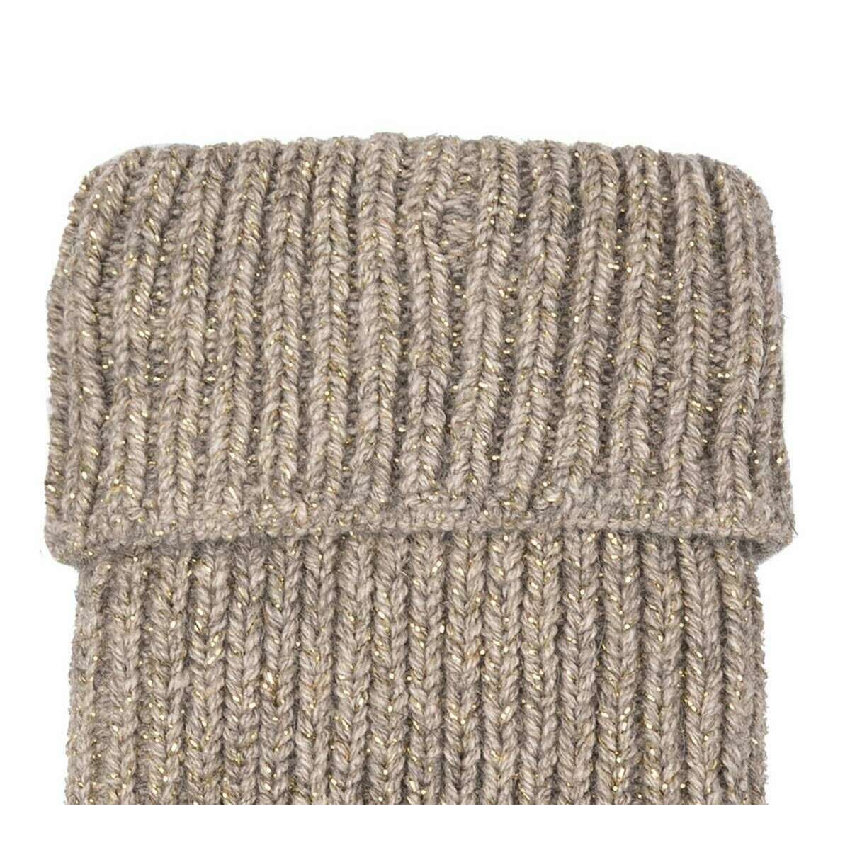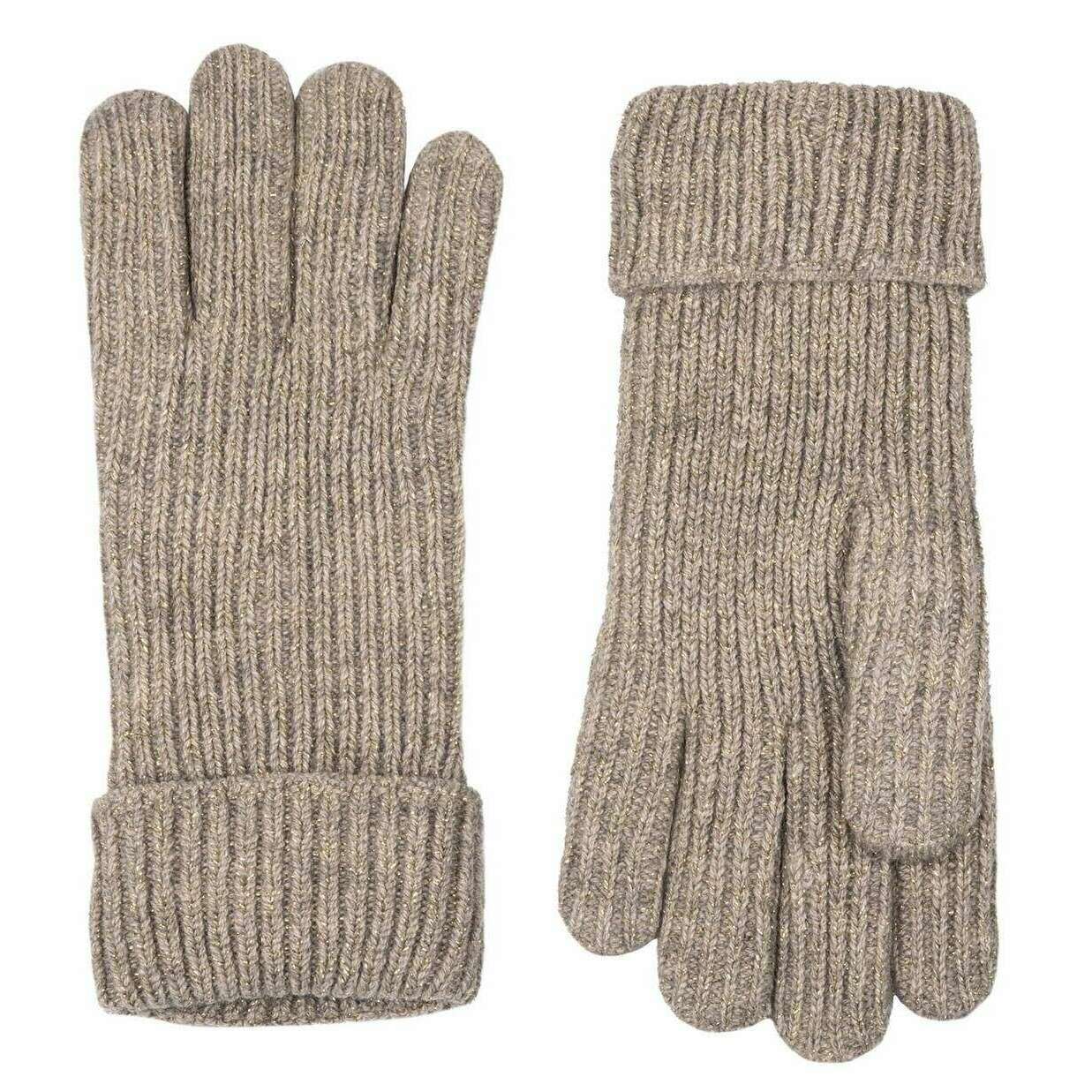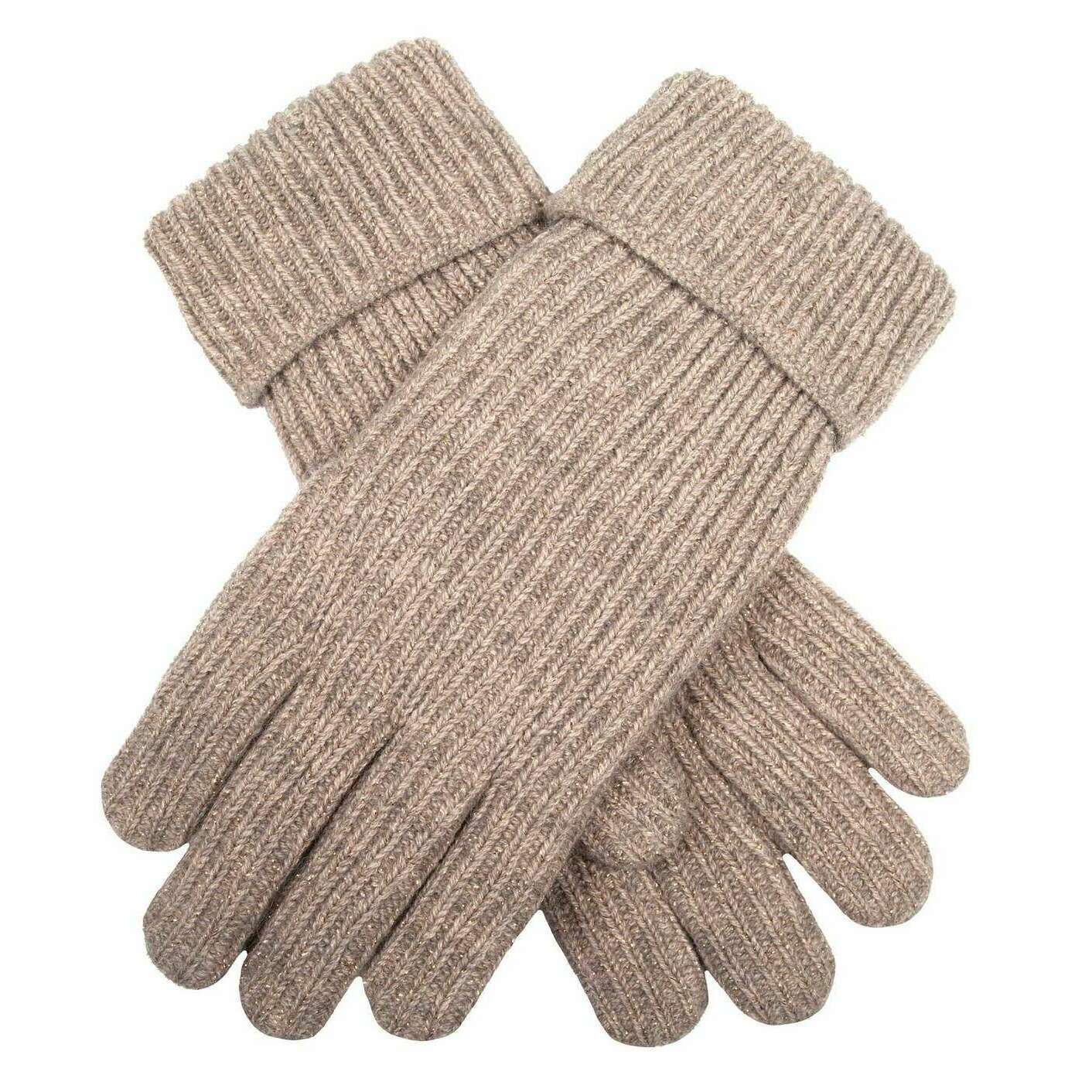 Dents Ribbed Knit Metallic Yarn Gloves - Oatmeal Cream