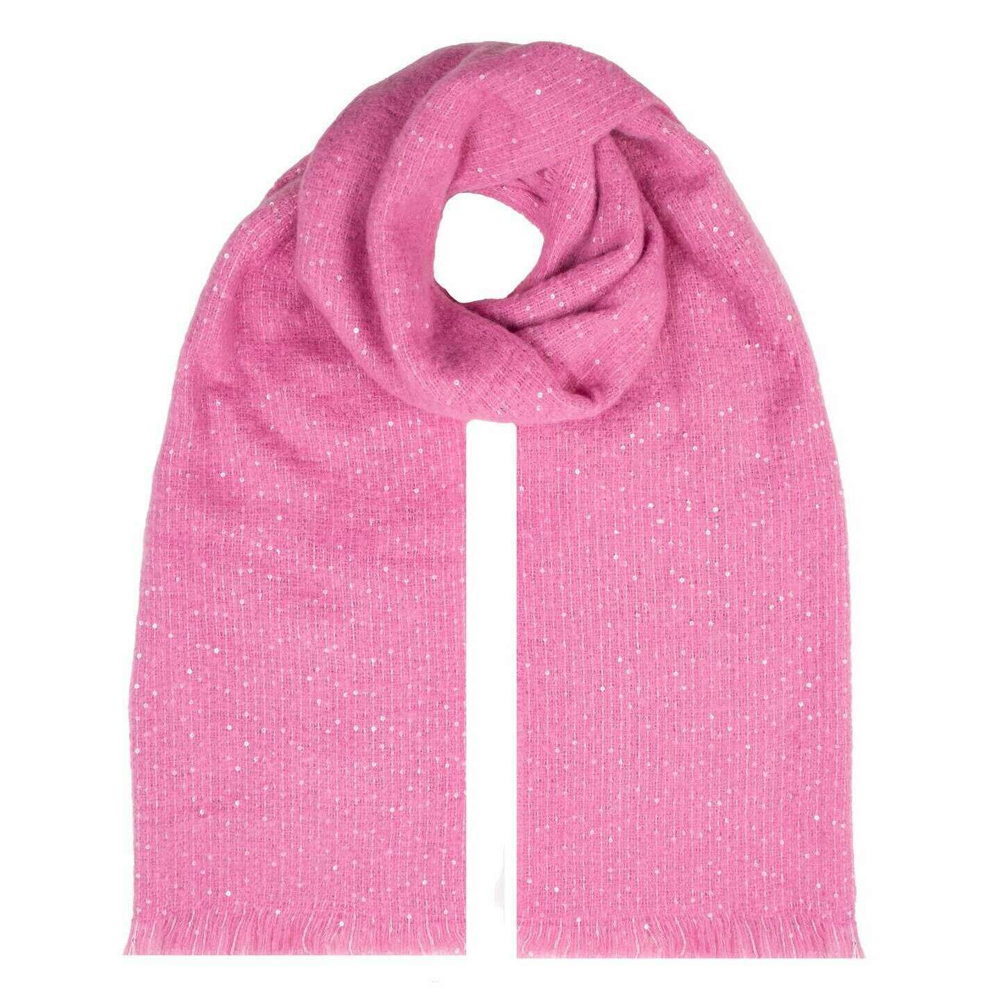 This women's sequin scarf by the brand Dents is made from 100% polyester and is showcased in pink. It measures 180cm(height) x 50cm(width). Also the candy pink scarf is designed in a plain pattern, It is recommended to hand wash only to keep this scarf in good condition. All the scarves come complete with dents tags. The Dents Sequin Scarf - Candy Pink features a fun sequin pink design. This scarf is cute and bold, perfect for cold weather and adding a bit of sparkle to an everyday look. Also includes classic tassels for an added unique touch.