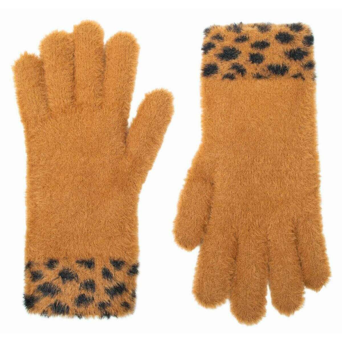 Dents Spotted Feather Yarn Knitted Gloves - Tan Beige