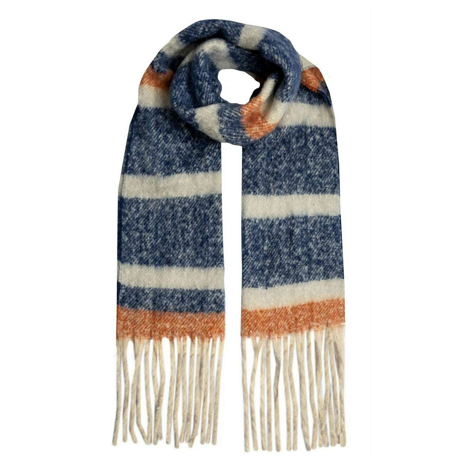 Dents Stripe Blanket Scarf - Navy/Pumpkin Orange