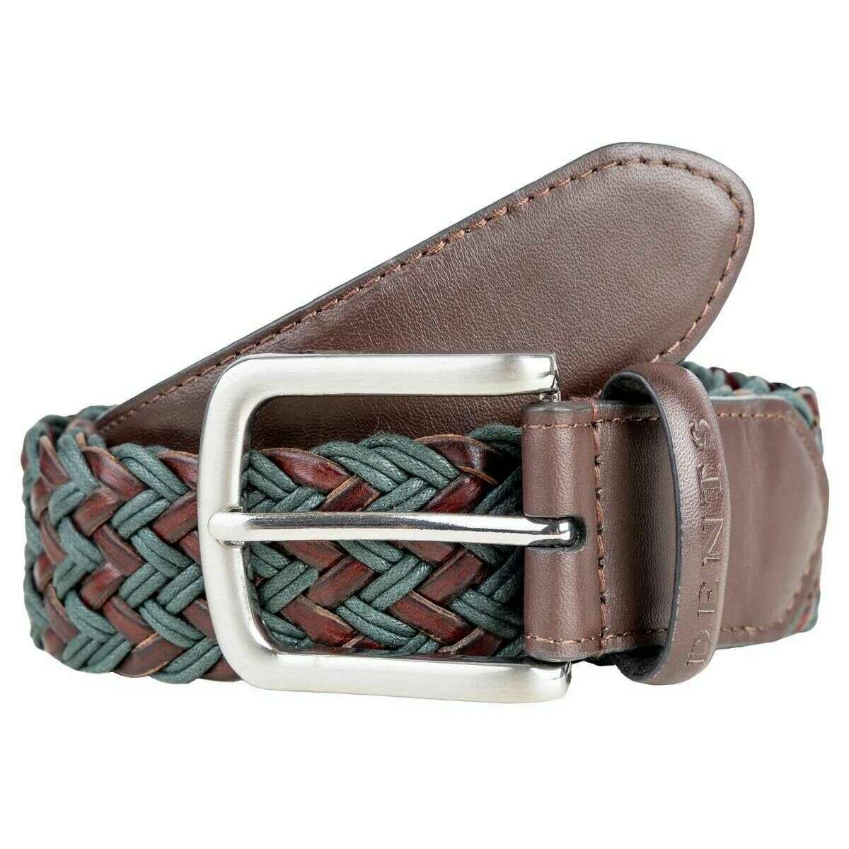 This well made men's woven leather and cotton belt from Dents comes in a green colour and is manufactured from 100% leather. All the belts come complete with dents tags. The Dents Woven Leather and Cotton Belt - Green is an ideal choice of you are looking to bring a bit of stylish flair to your wardrobe. Its plaited structure gives it a stunning overall look which will compliment your outfit on both casual and formal occasions perfectly. This belt features a single leather keeper, satin nickel colour fittings and is unlined.