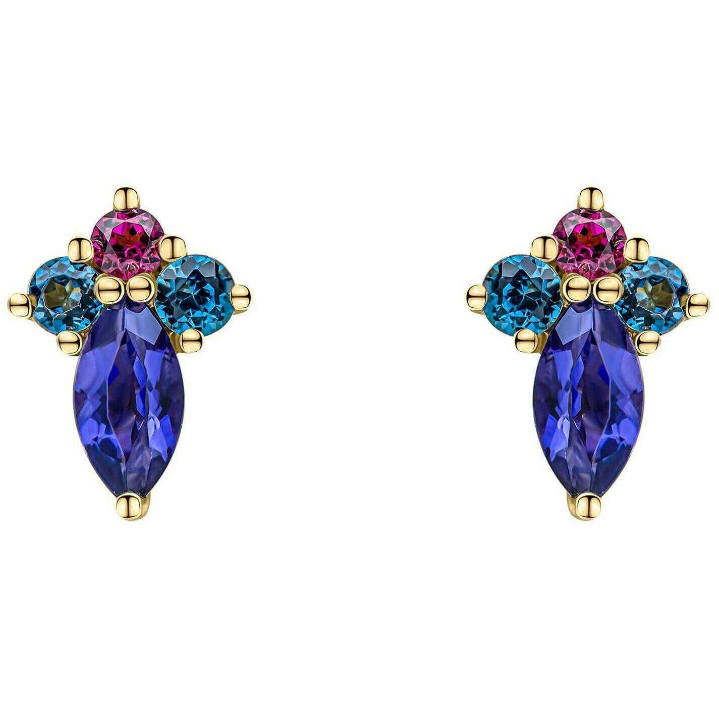 Elements Gold Barcelona 9ct Gold Cluster Stud Earrings - Gold/Blue/Pink