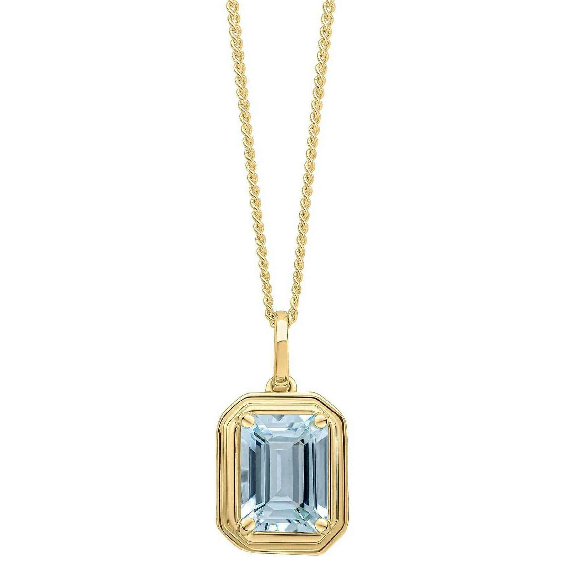 Elements Gold Elongated Octagon Aquamarine 9ct Gold Pendant - Gold/Blue