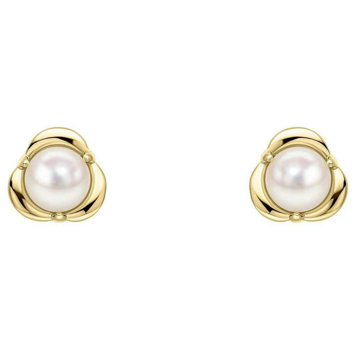 Elements Gold Petal Set Pearl 9ct Gold Earrings - Gold/White