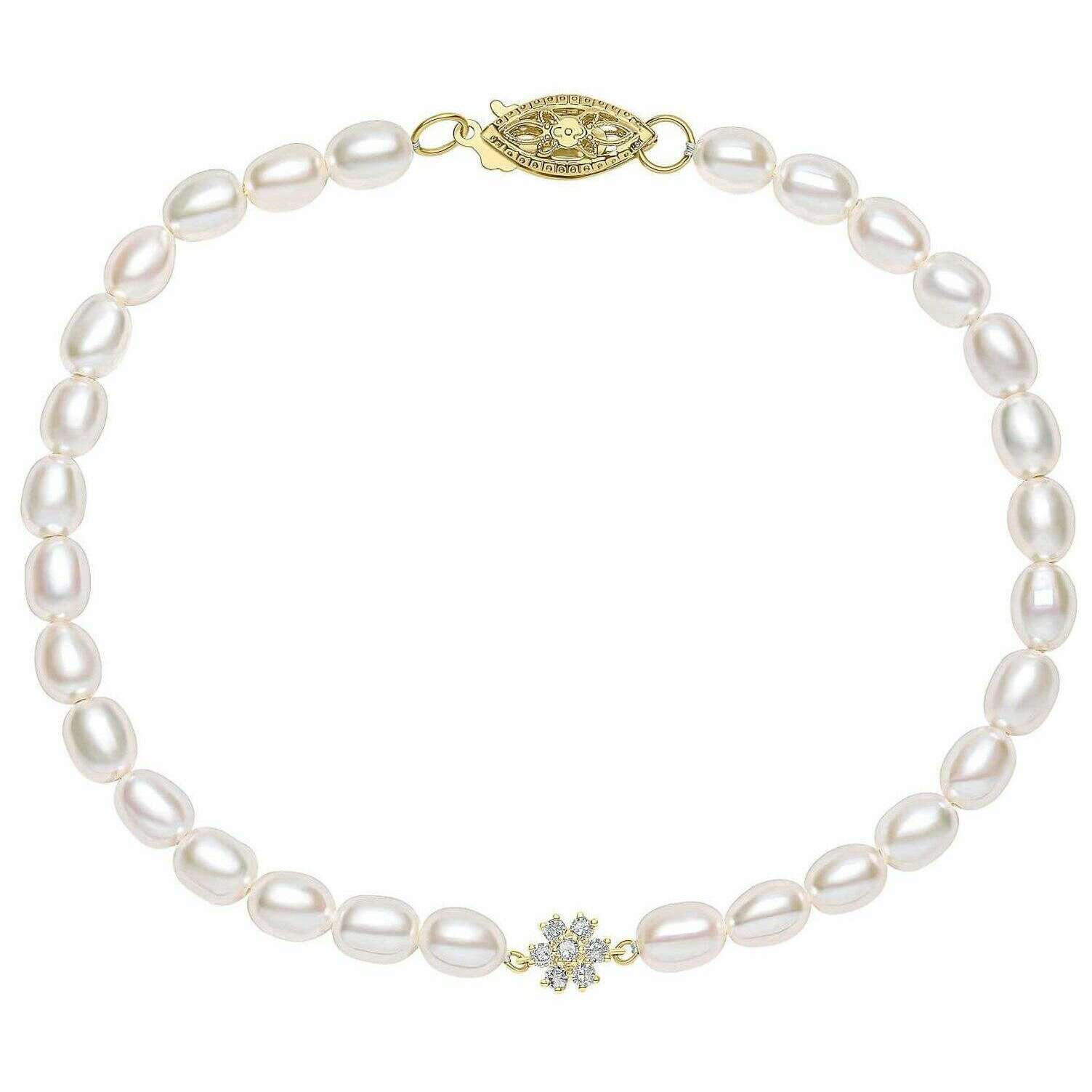 Elements Gold Seed Pearl and Flower 9ct Gold Bracelet - Gold/White