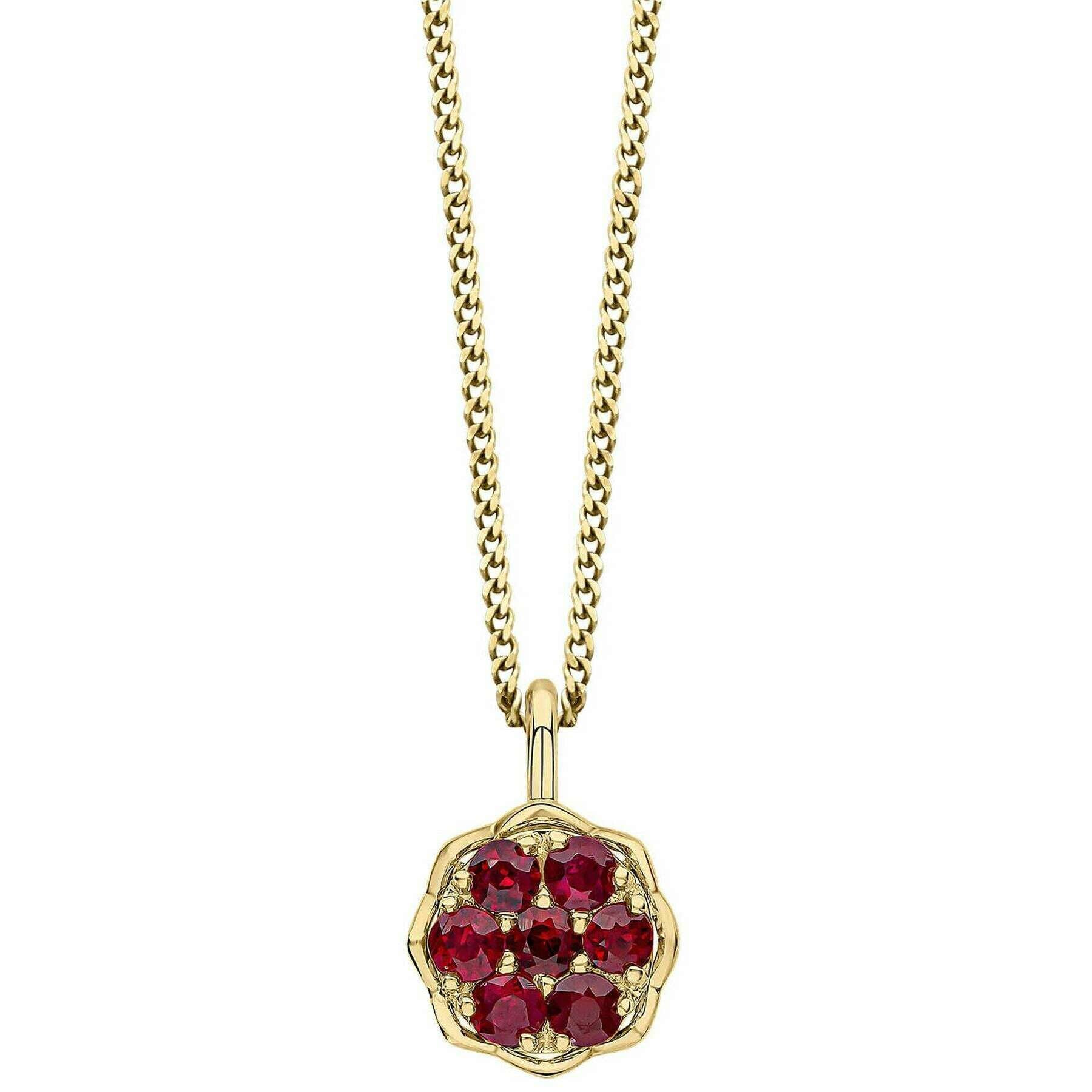 Elements Gold Seven Stone Ruby Cluster 9ct Gold Pendant - Gold/Red